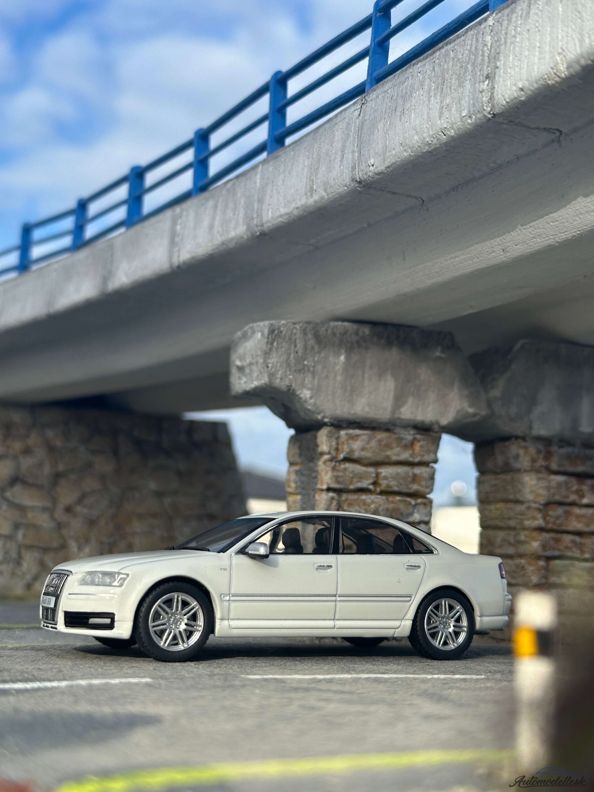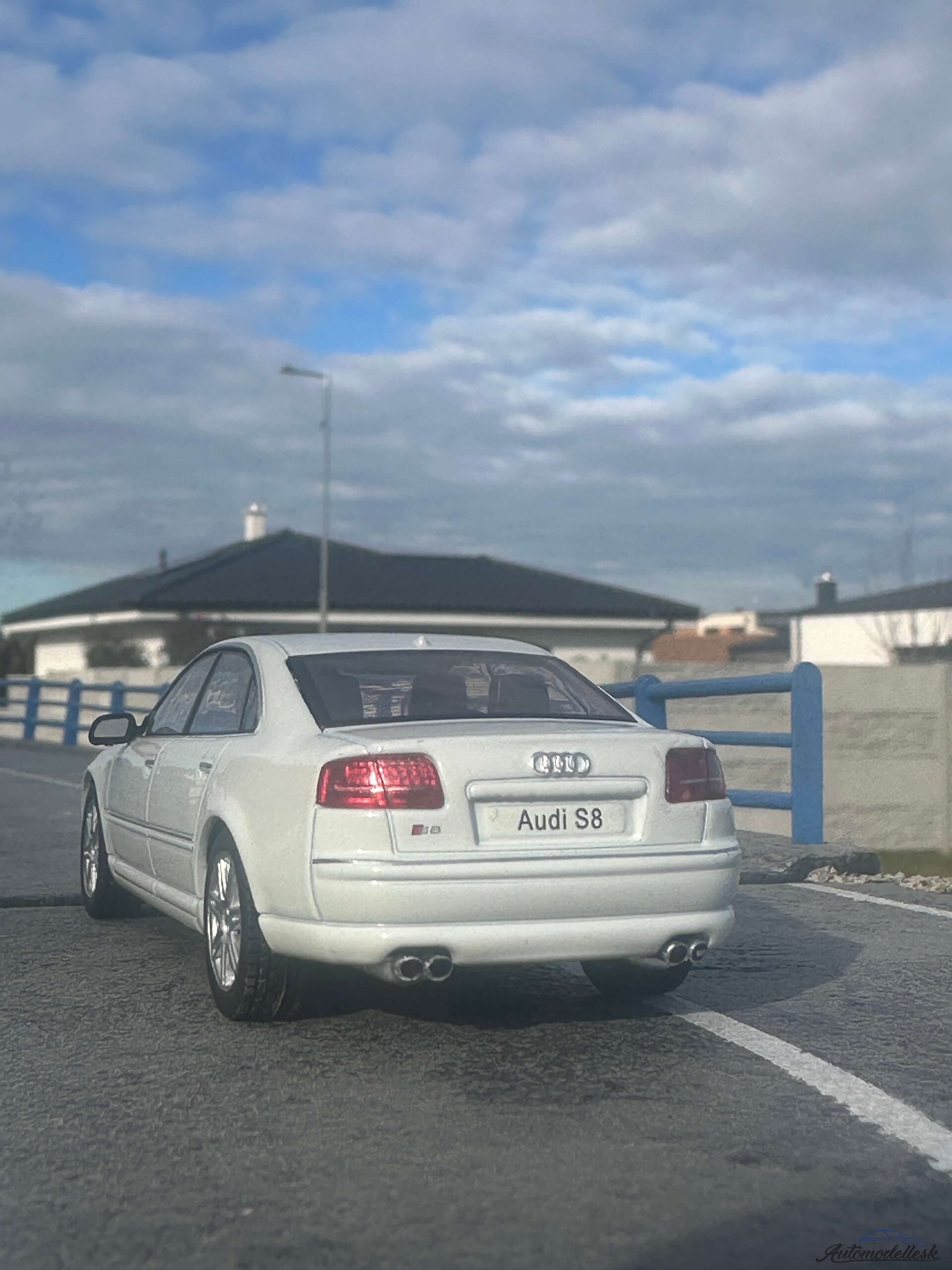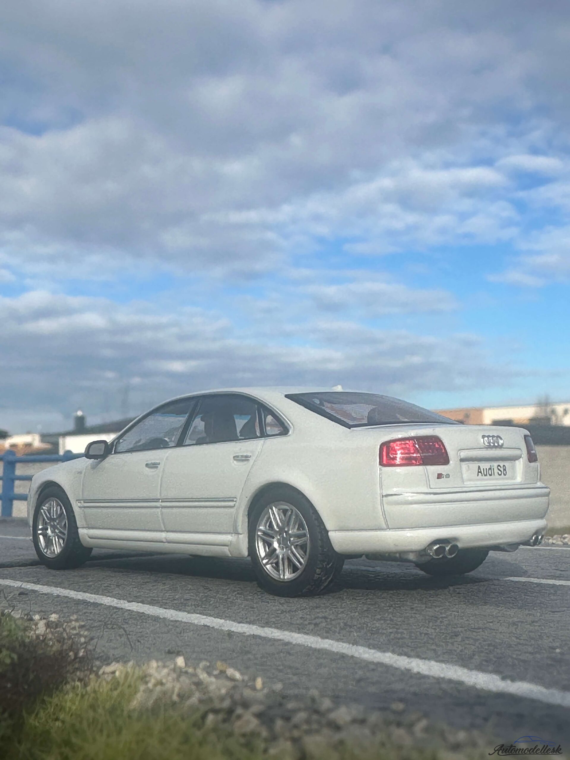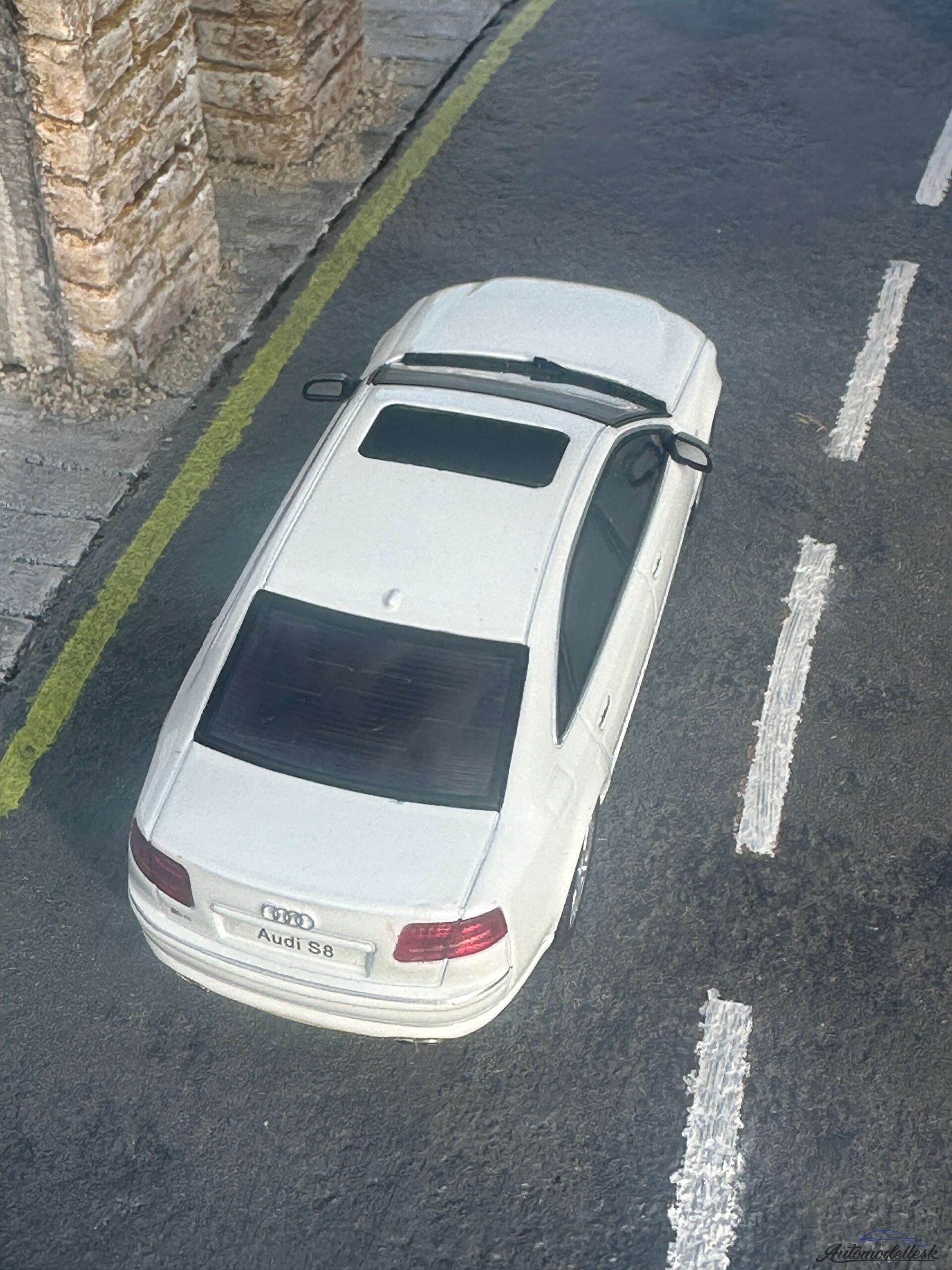 - Detailná replika: Verné prevedenie luxusného sedanu Audi S8 generácie D3 v elegantnej bielej farbe.