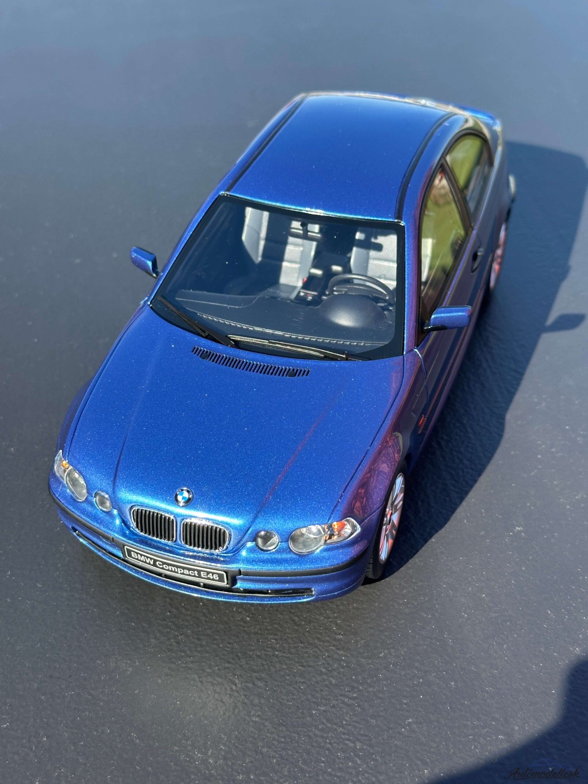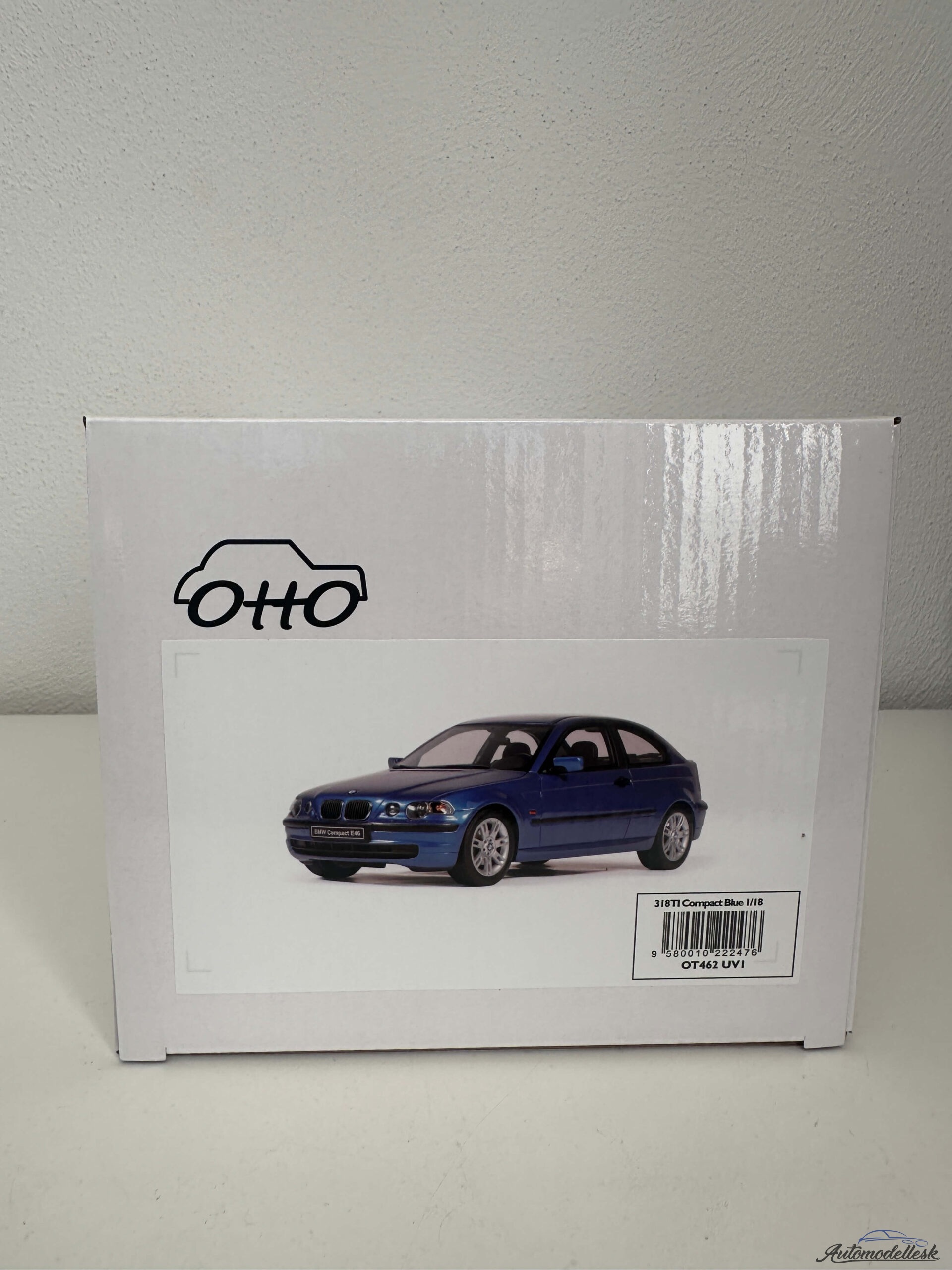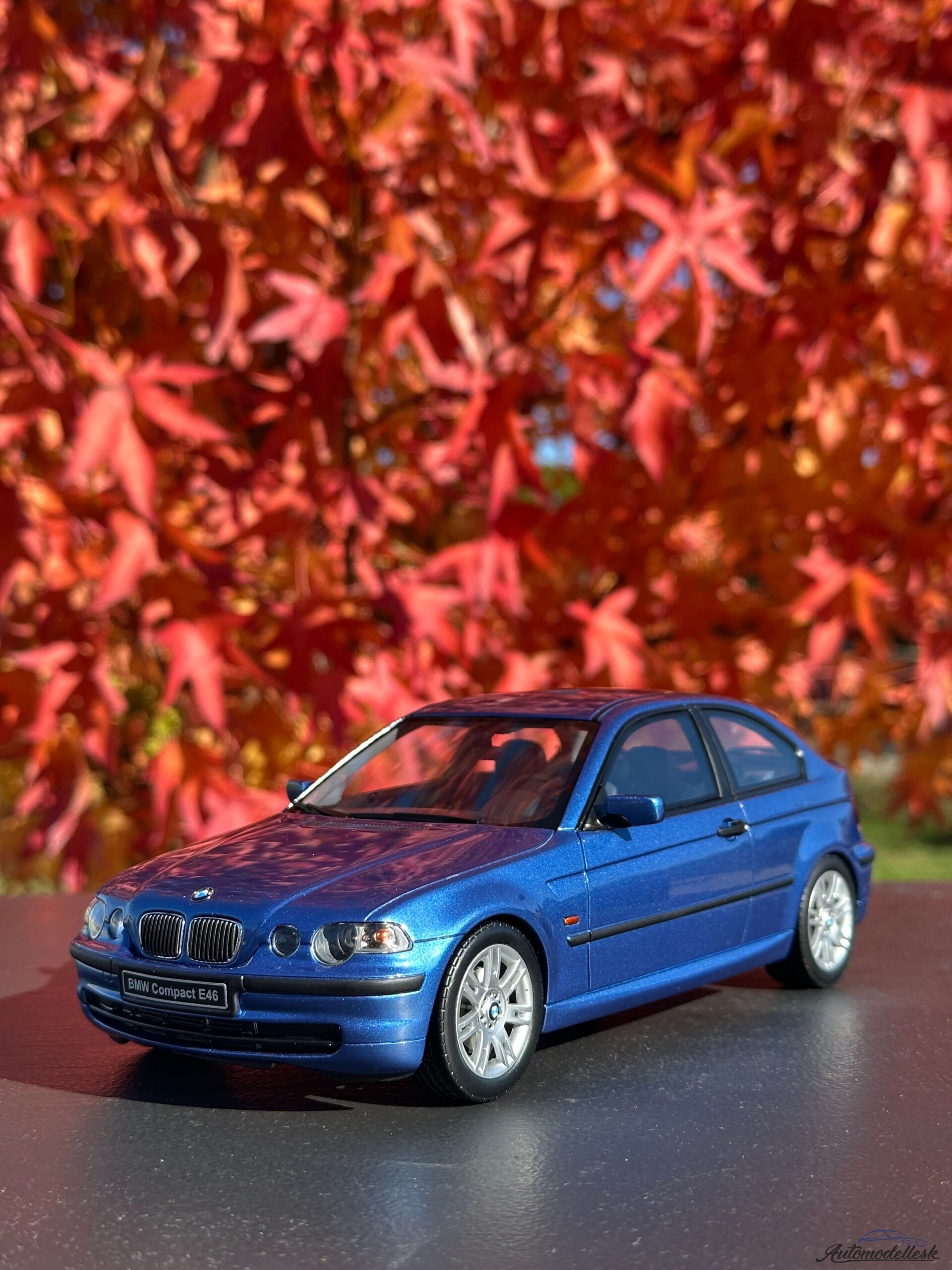 Model auta BMW E46 318 TI COMPACT, 2002 , estoril modrá. Mierka 1:18. OttOmobile. Limitovaná edícia 2000 ks. Balenie polystyrenový obal v papierovej krabici. Model nemá otvárateľné časti karosérie.