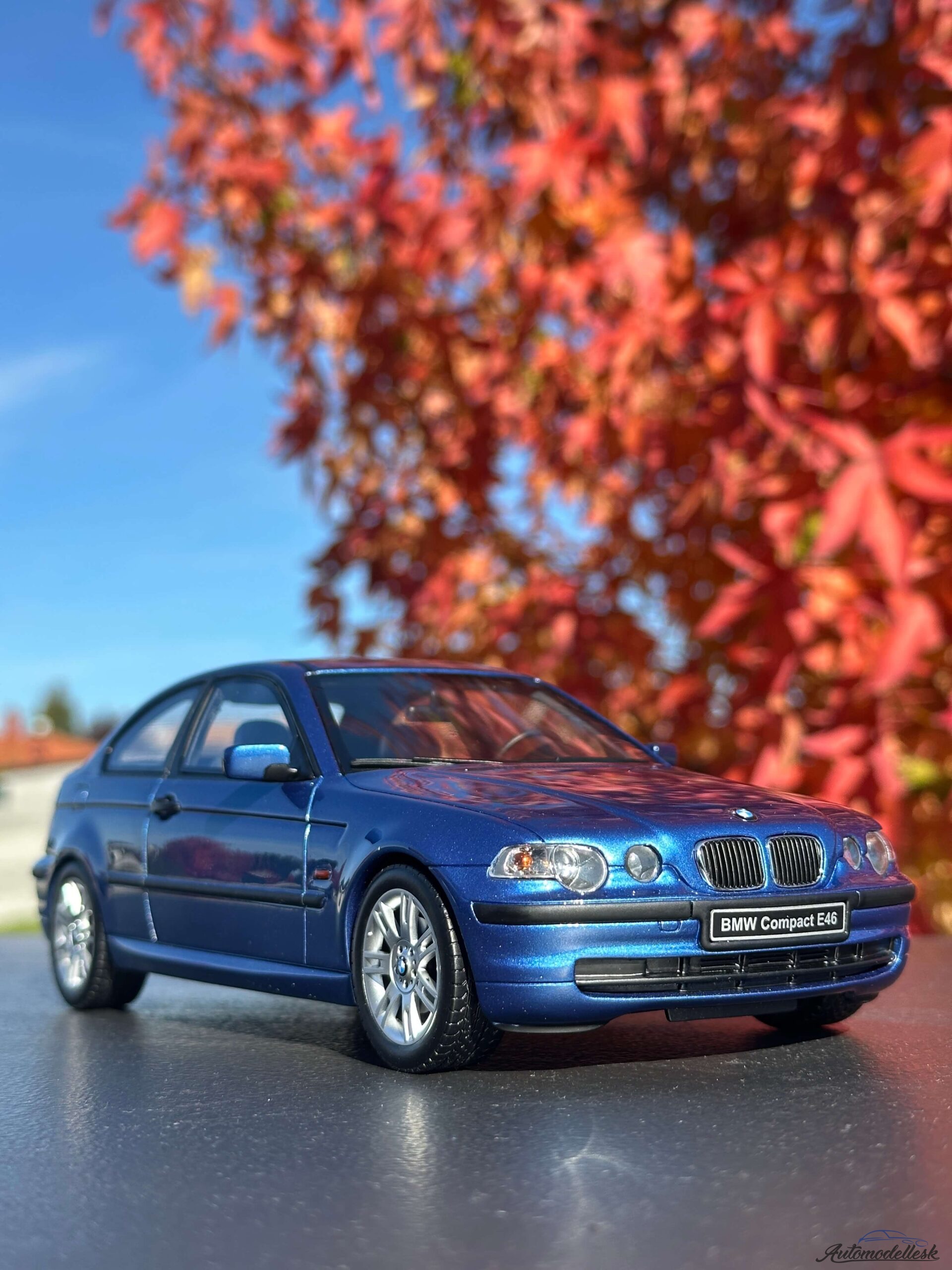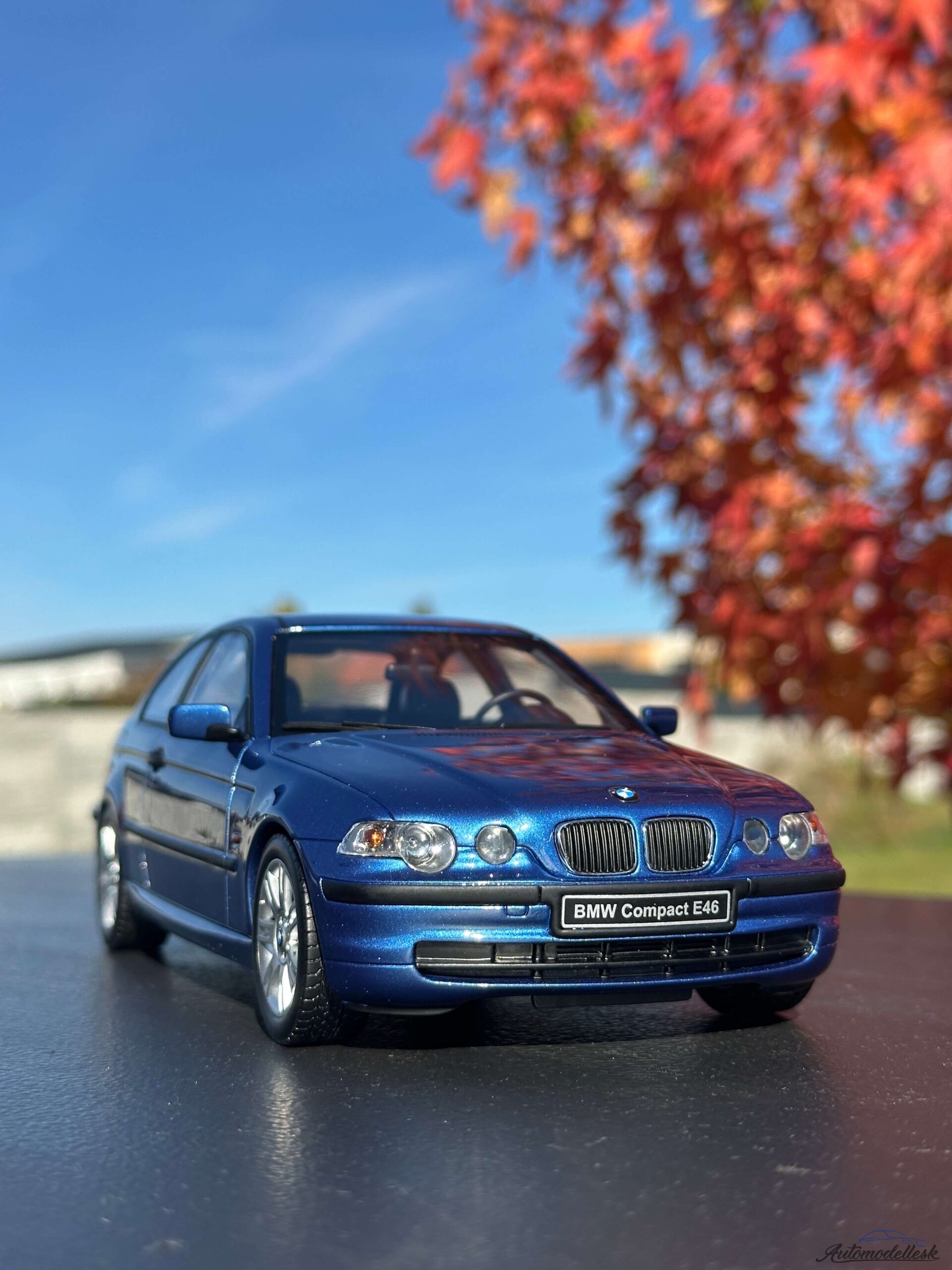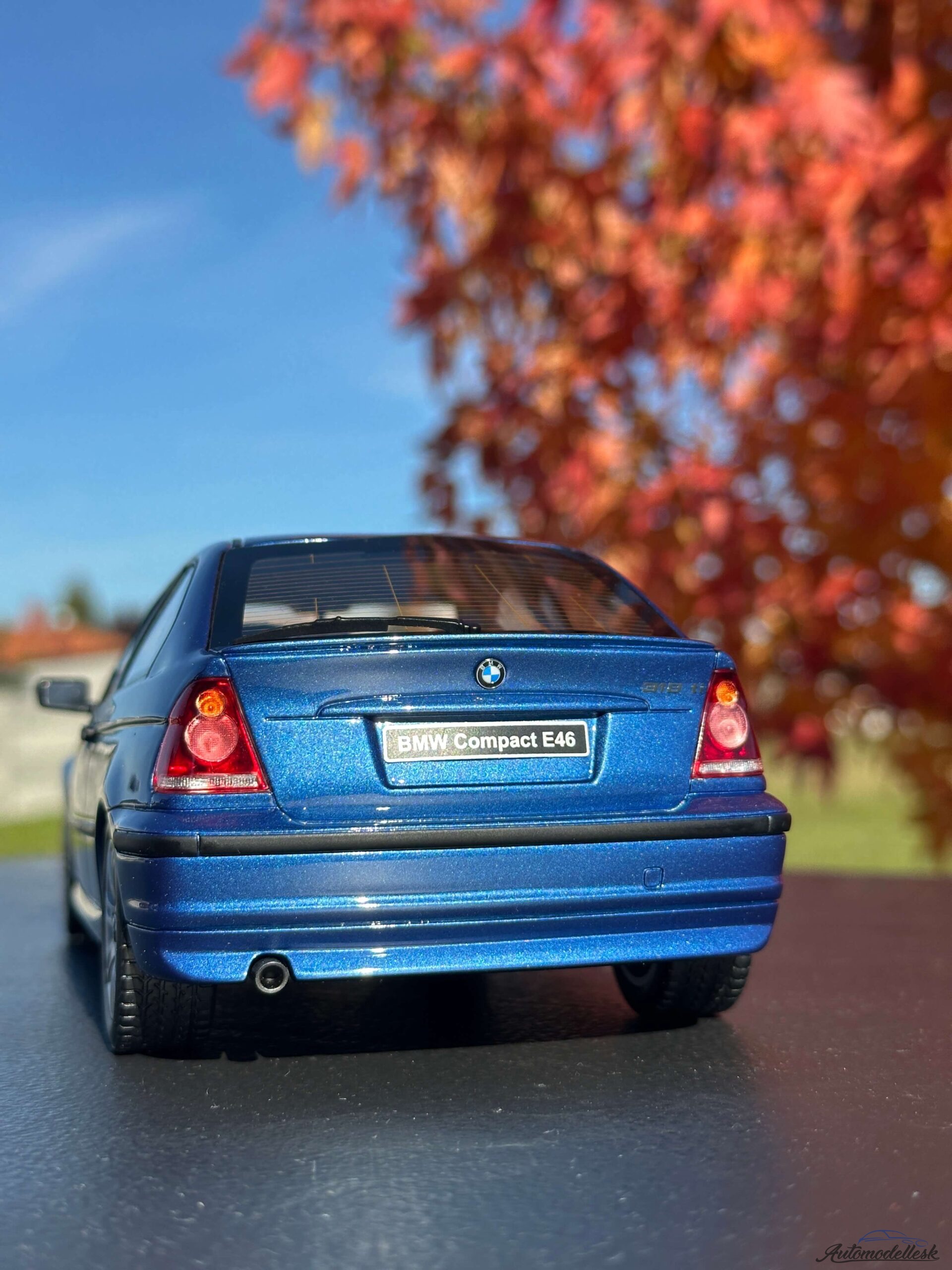 Model auta BMW E46 318 TI COMPACT, 2002 , estoril modrá. Mierka 1:18. OttOmobile. Limitovaná edícia 2000 ks. Balenie polystyrenový obal v papierovej krabici. Model nemá otvárateľné časti karosérie.