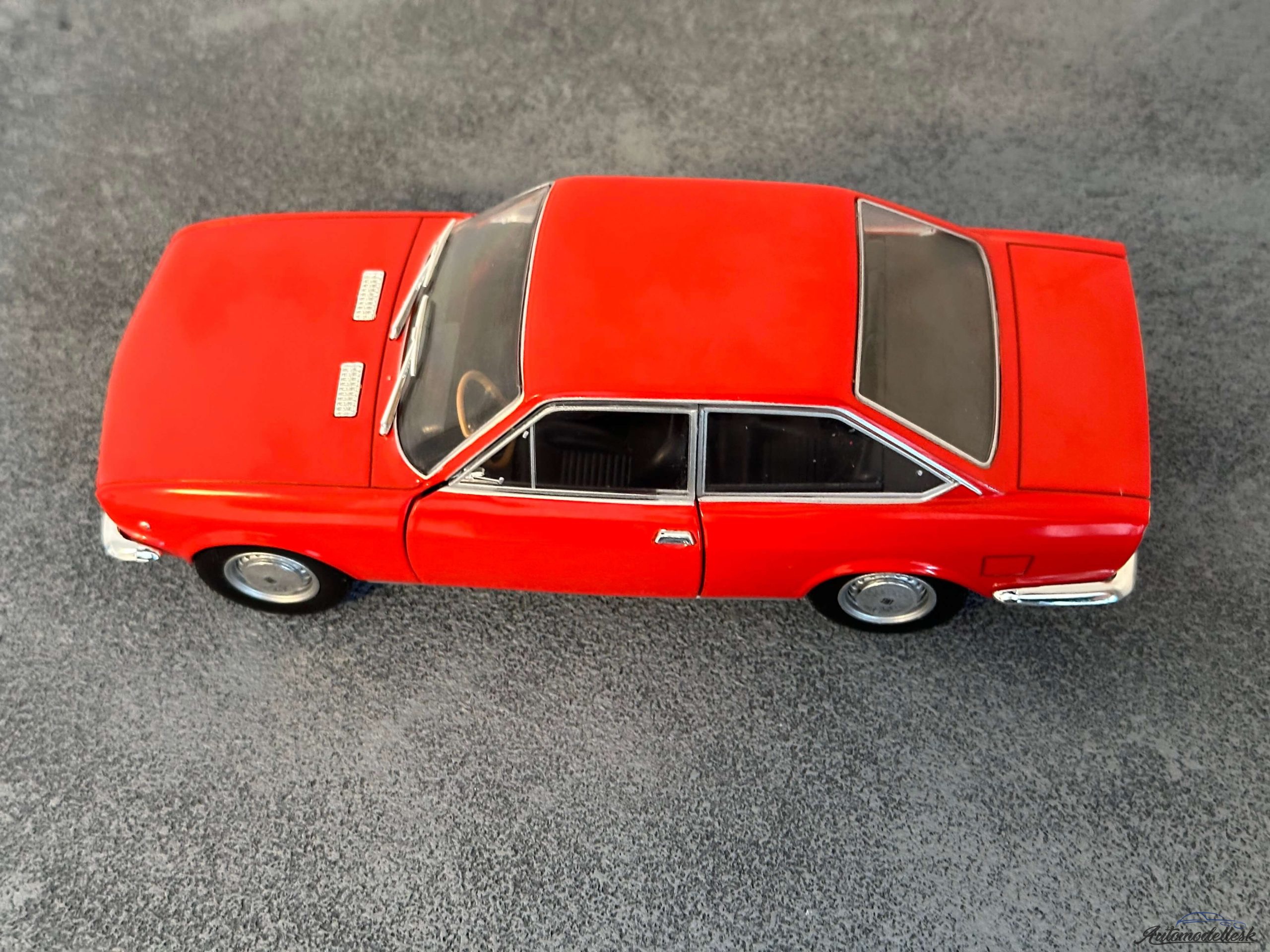 Model auta Fiat 124 Sport 1600, červená. Mierka 1:24. SpecialC.-132. Predné vodičové dvere otvárateľné