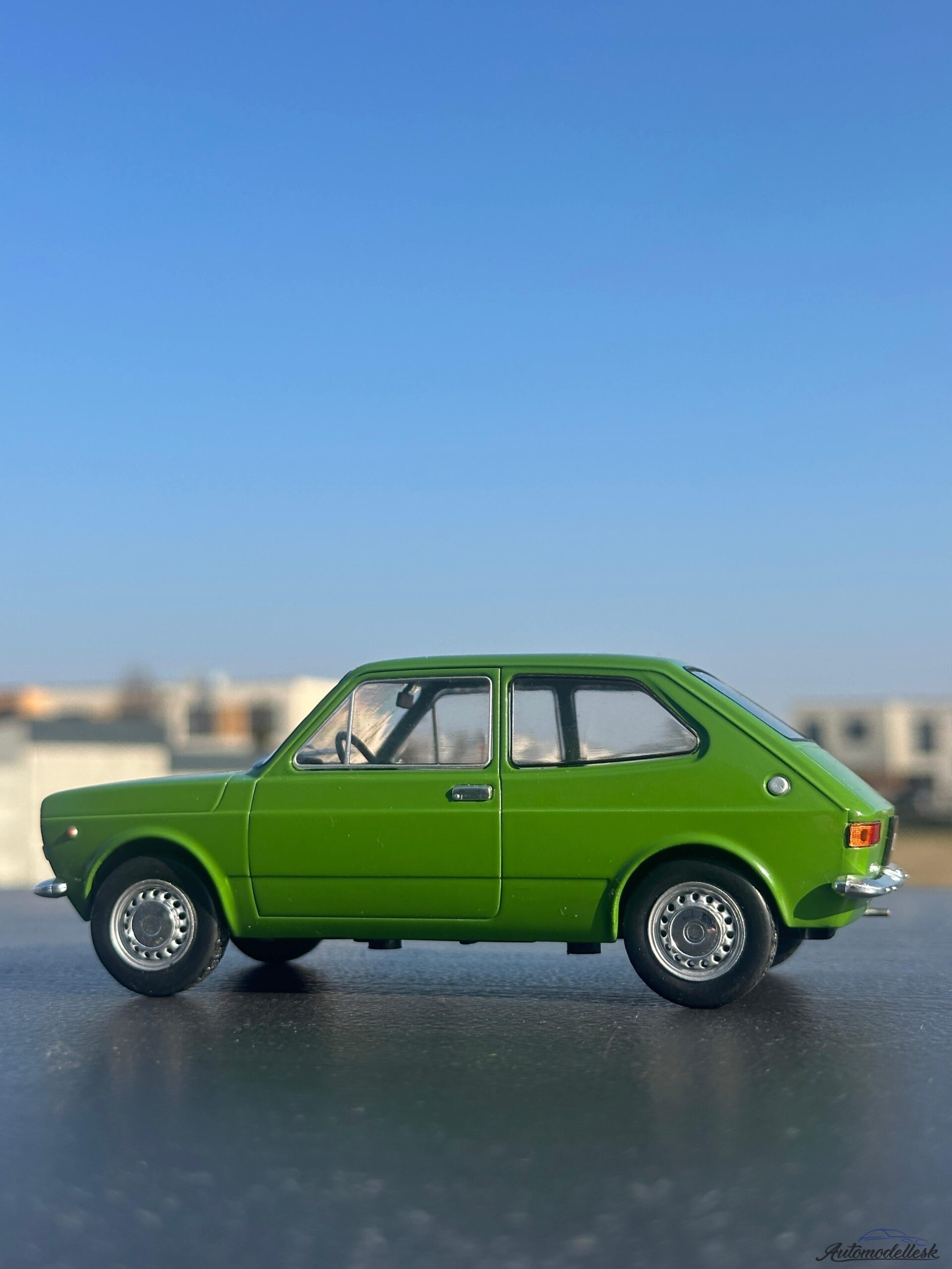 Zaujímavosti o originálnom vozidle: Fiat 127, predstavený v roku 1971, spôsobil v Európe malú revolúciu. Bol jedným z prvých moderných hatchbackov s motorom vpredu naprieč a pohonom predných kolies, čo mu zabezpečilo neuveriteľných 80 % vnútorného priestoru pre posádku a batožinu. Jeho úspech bol okamžitý – v roku 1972 získal prestížny titul Európske auto roka. Fiat 127 bol milovaný pre svoju obratnosť, nízku spotrebu a nadčasový dizajn od Poria Manzúa. Stal sa základným kameňom pre milióny rodín a dodnes je považovaný za jedno z najdôležitejších ľudových vozidiel v histórii značky Fiat, ktoré definovalo segment malých mestských áut na ďalšie desaťročia.