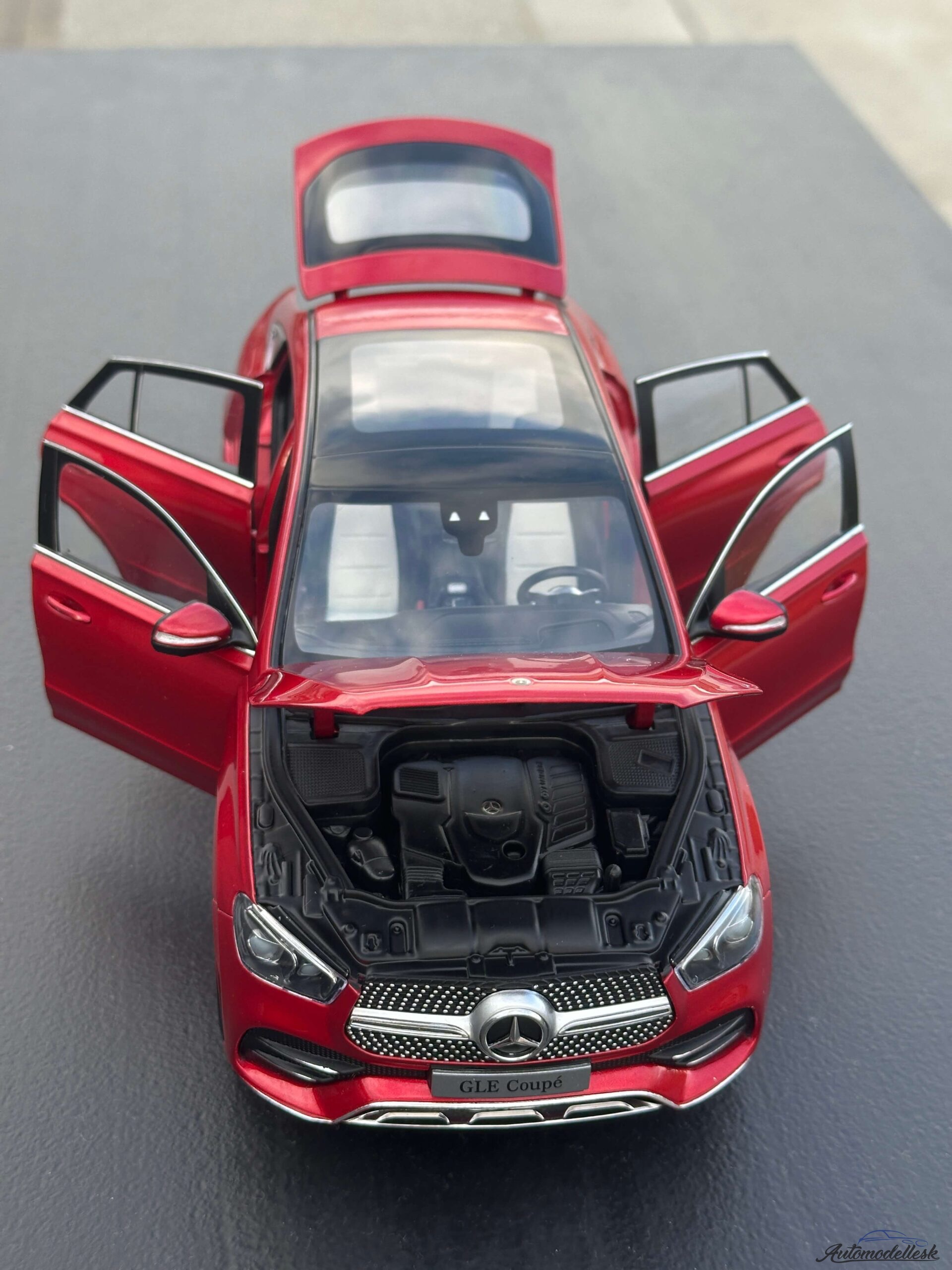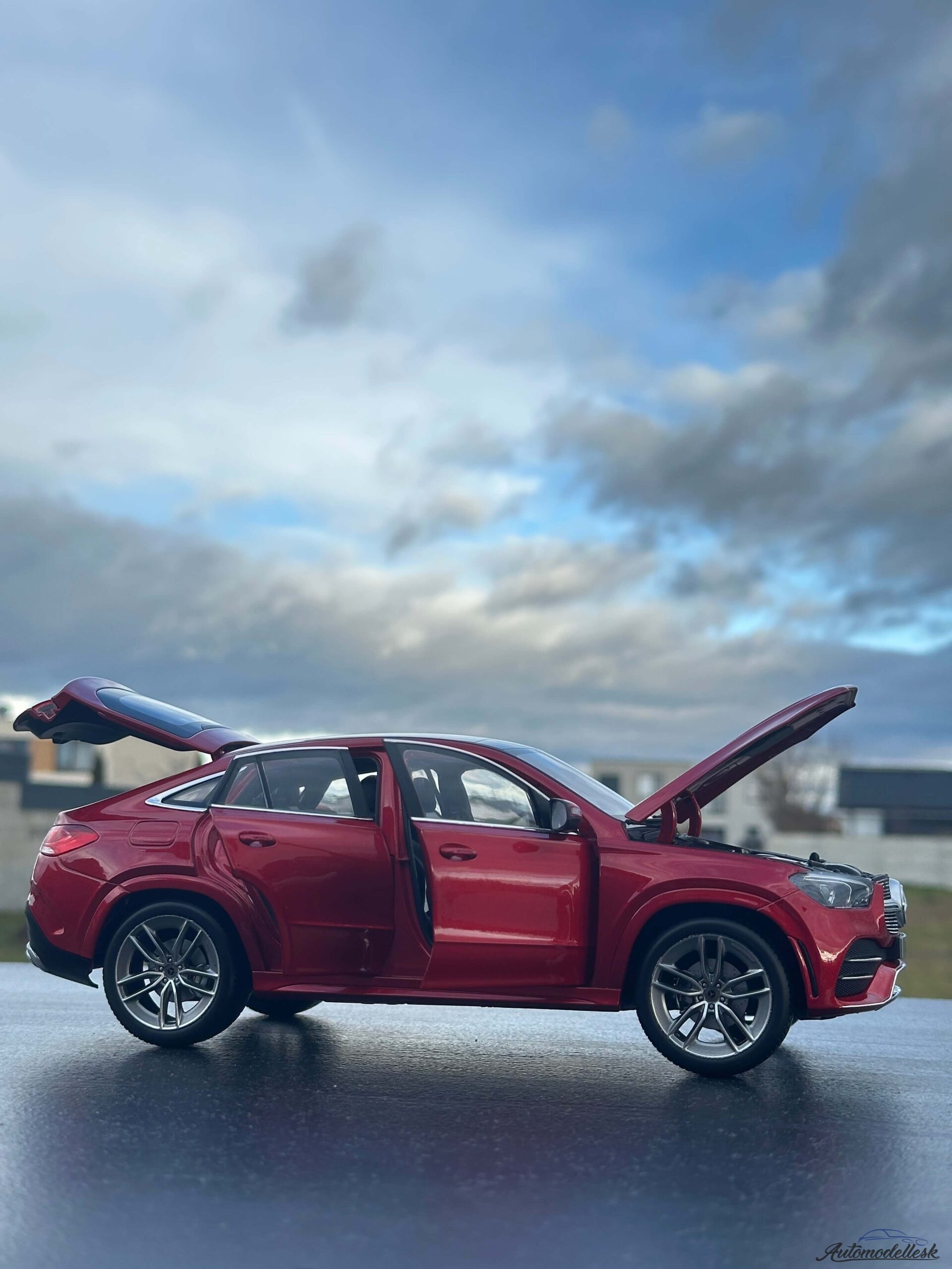 Model auta MERCEDES BENZ GLE-CLASS GLE COUPE (C167), 2020, DESIGNO HYACINTH RED MET. Mierka 1:18. i-Scale. Balenie polystyrenový obal v papierovej krabici. Model má otvárateľné dvere, kapotu aj kufor, čo umožňuje pohľad na detailne spracovaný interiér a motor.
