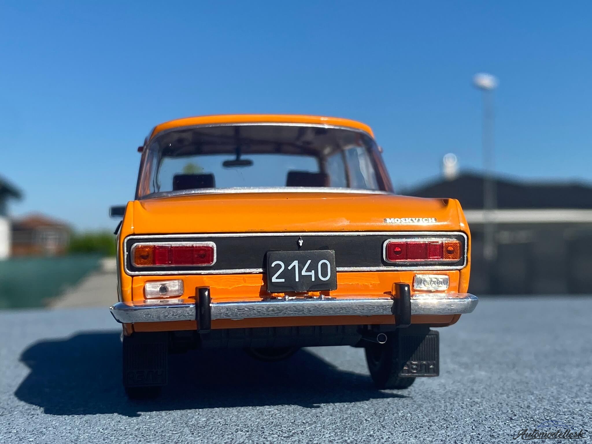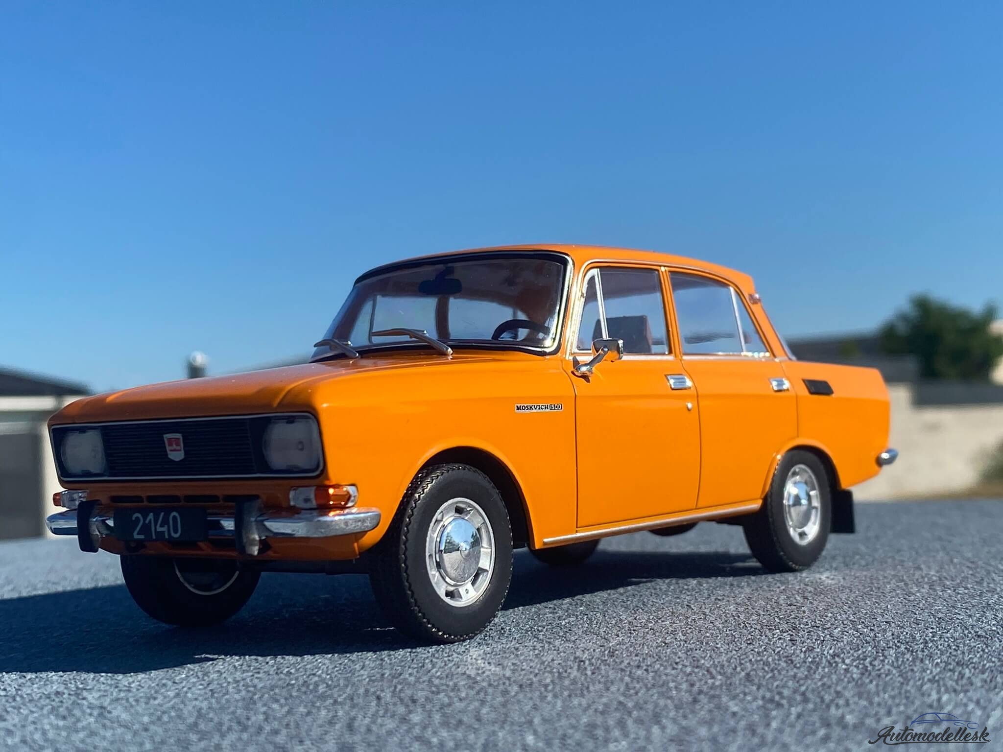 Model auta Moskvic 2140, oranžová. Mierka 1:24. Whitebox.