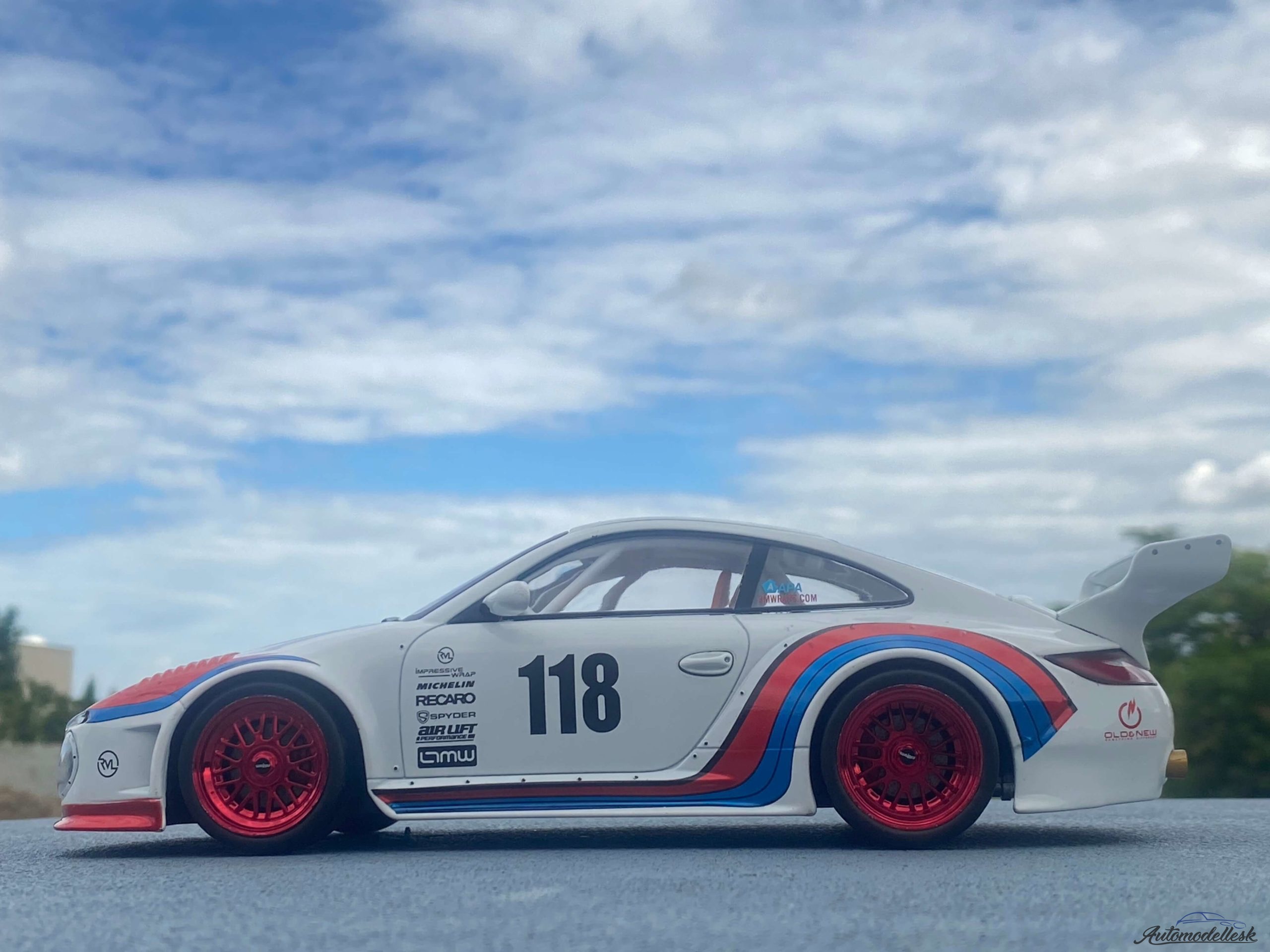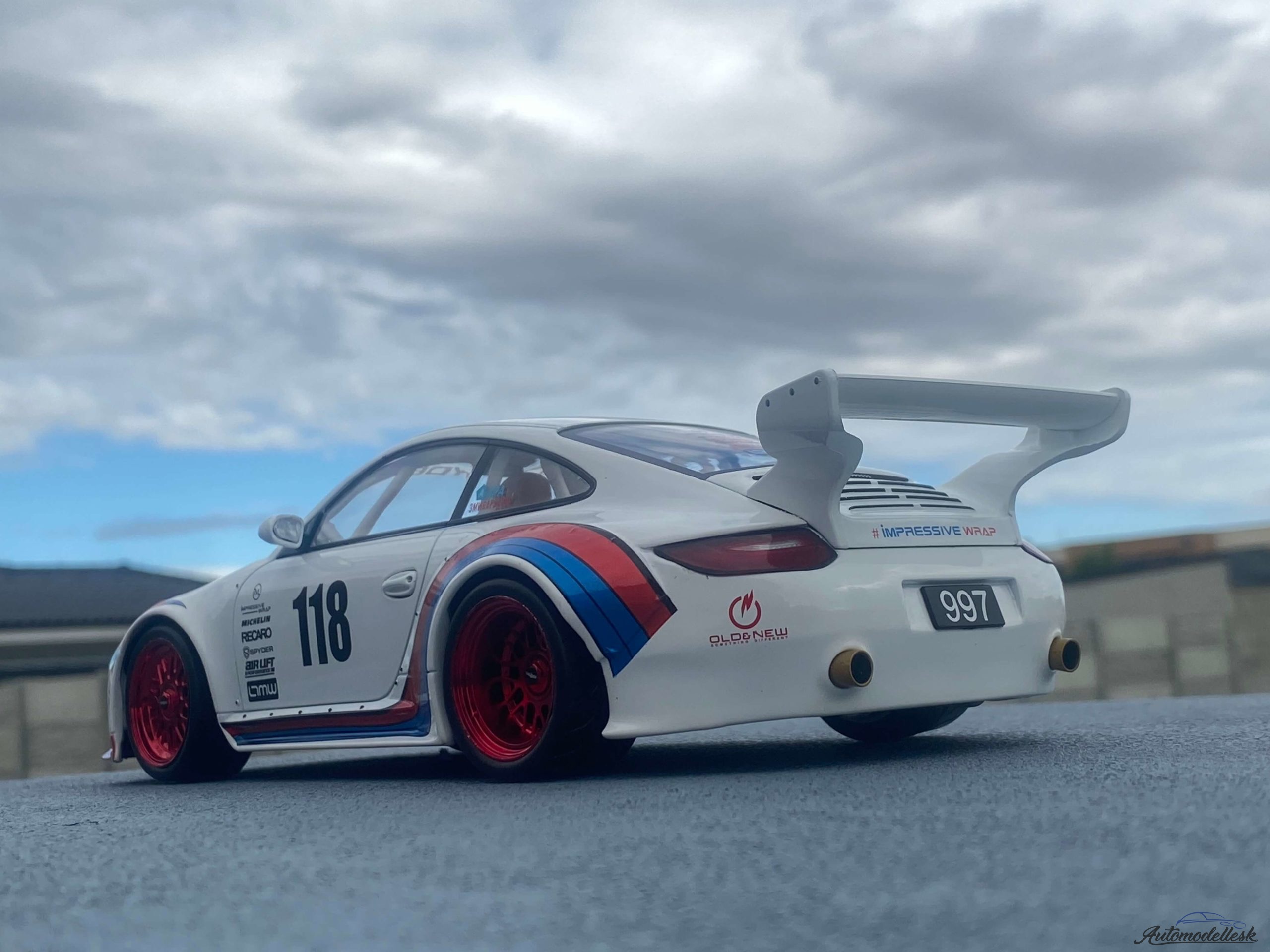 Model auta Porsche Old & New 997, weiss/Dekor, Martini, Basis: 911 (997), 2020. Mierka 1:18.