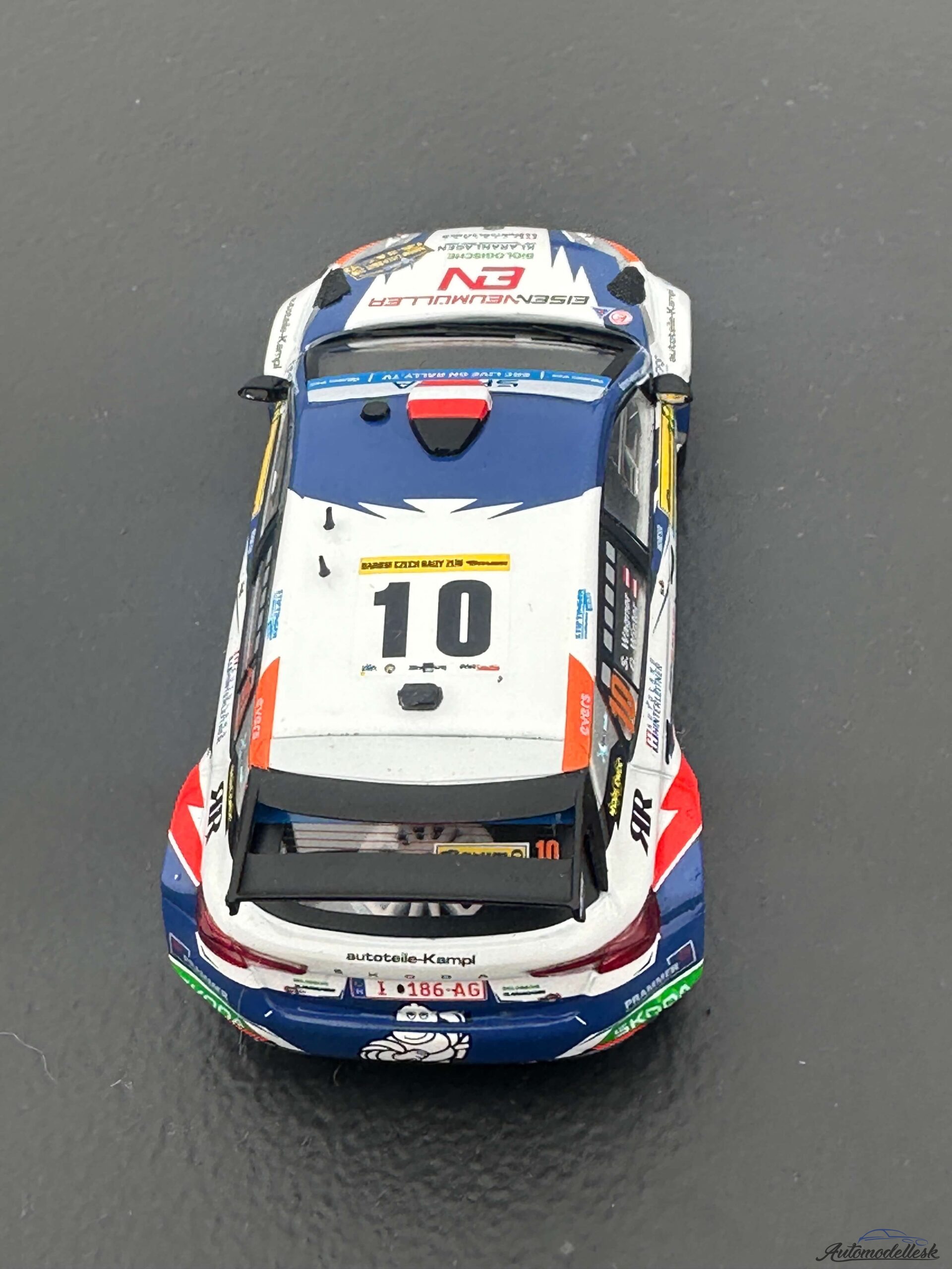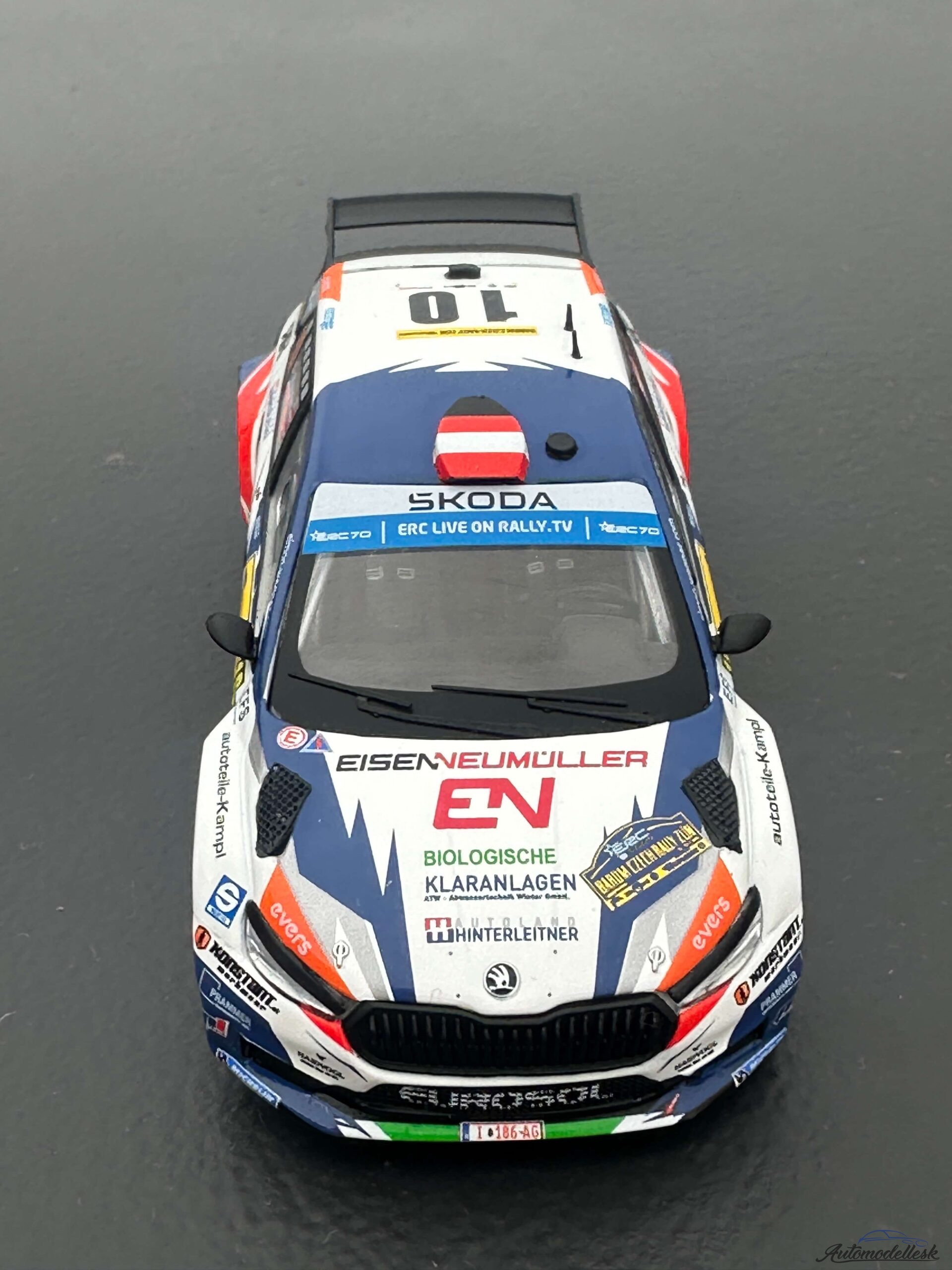 Model auta rally Škoda Fabia Rally2, Rally WM, Barum Rally, 2023, #10. S.Wagner – G.Winter. Mierka 1:43.