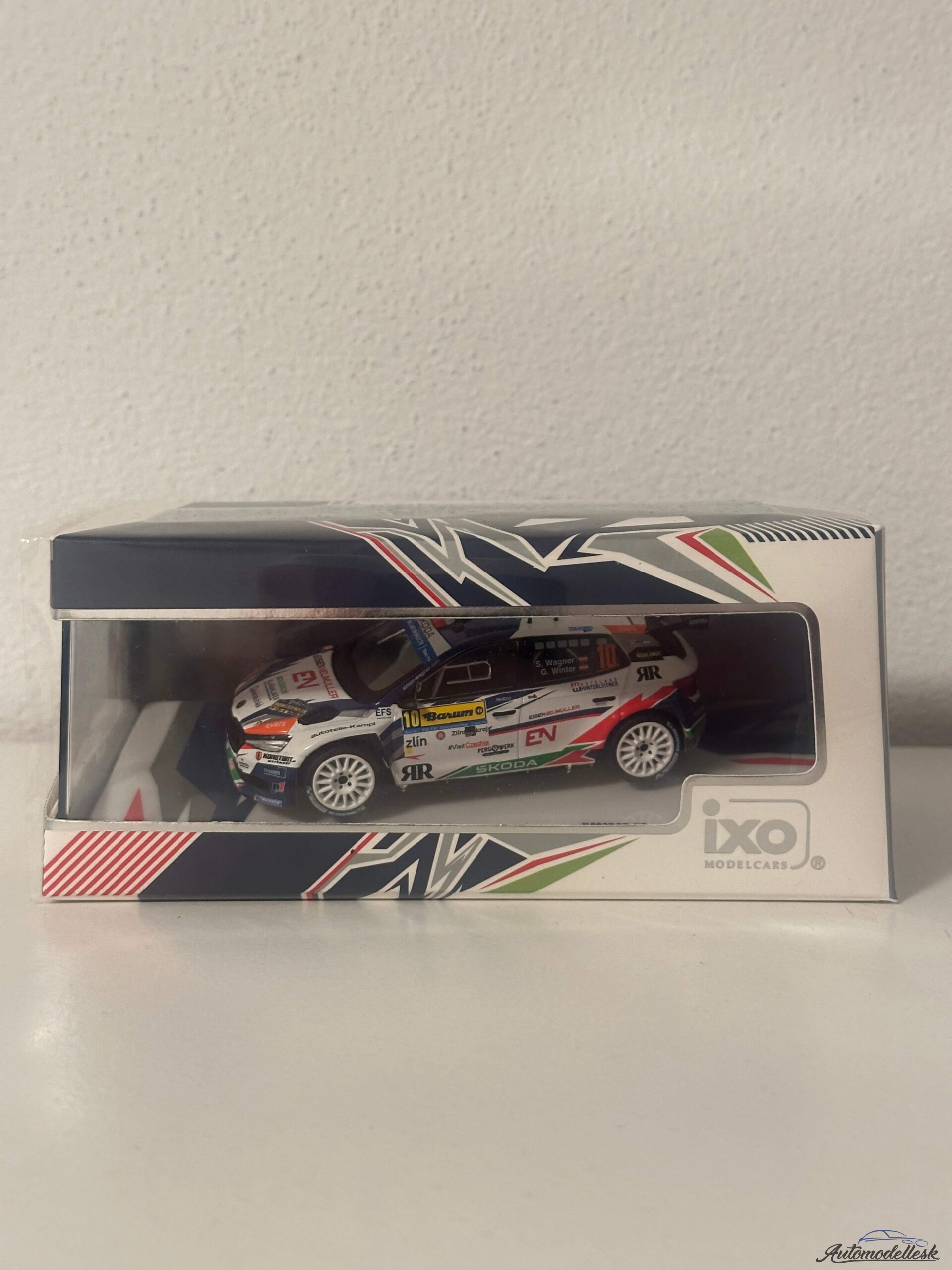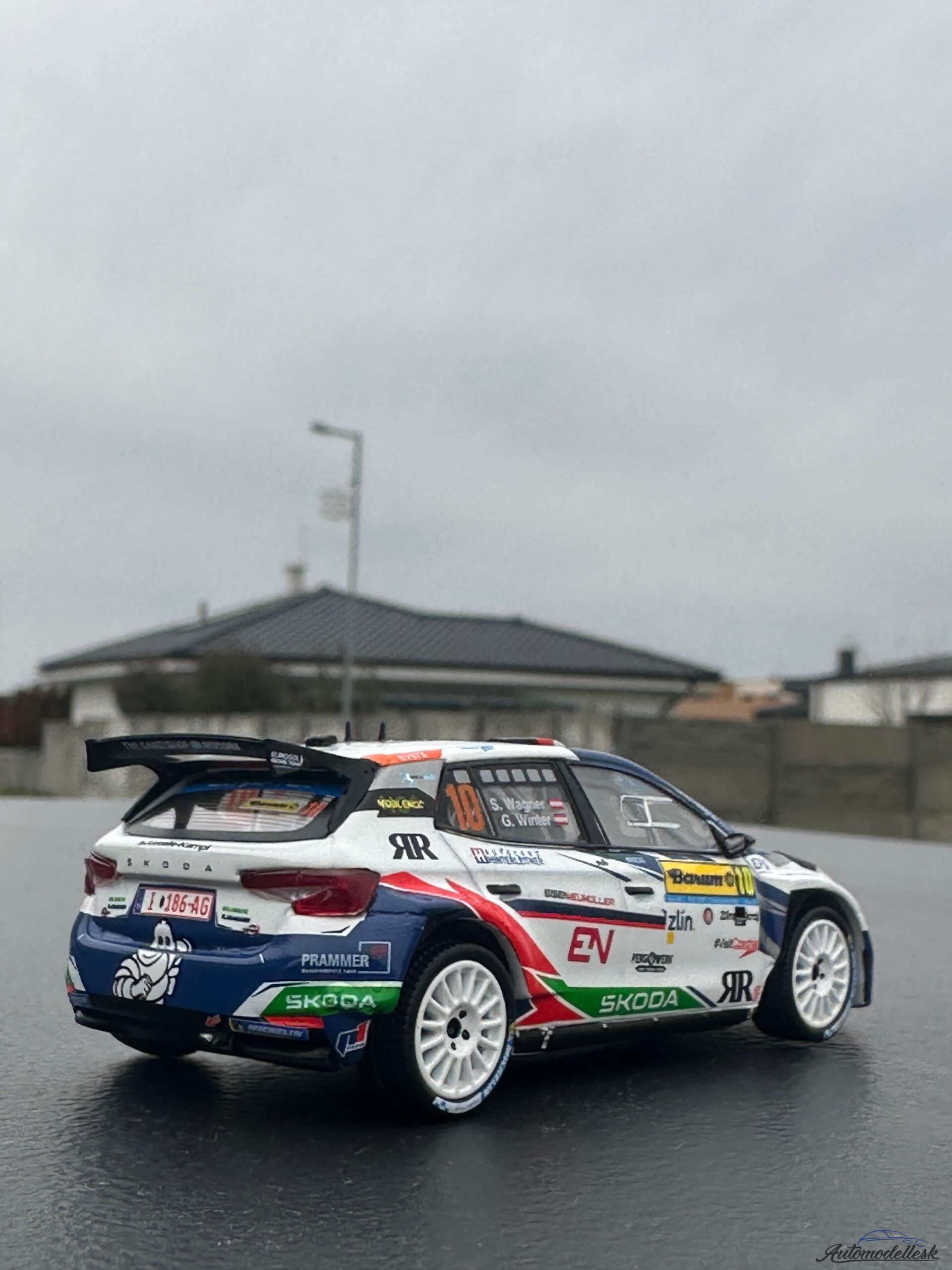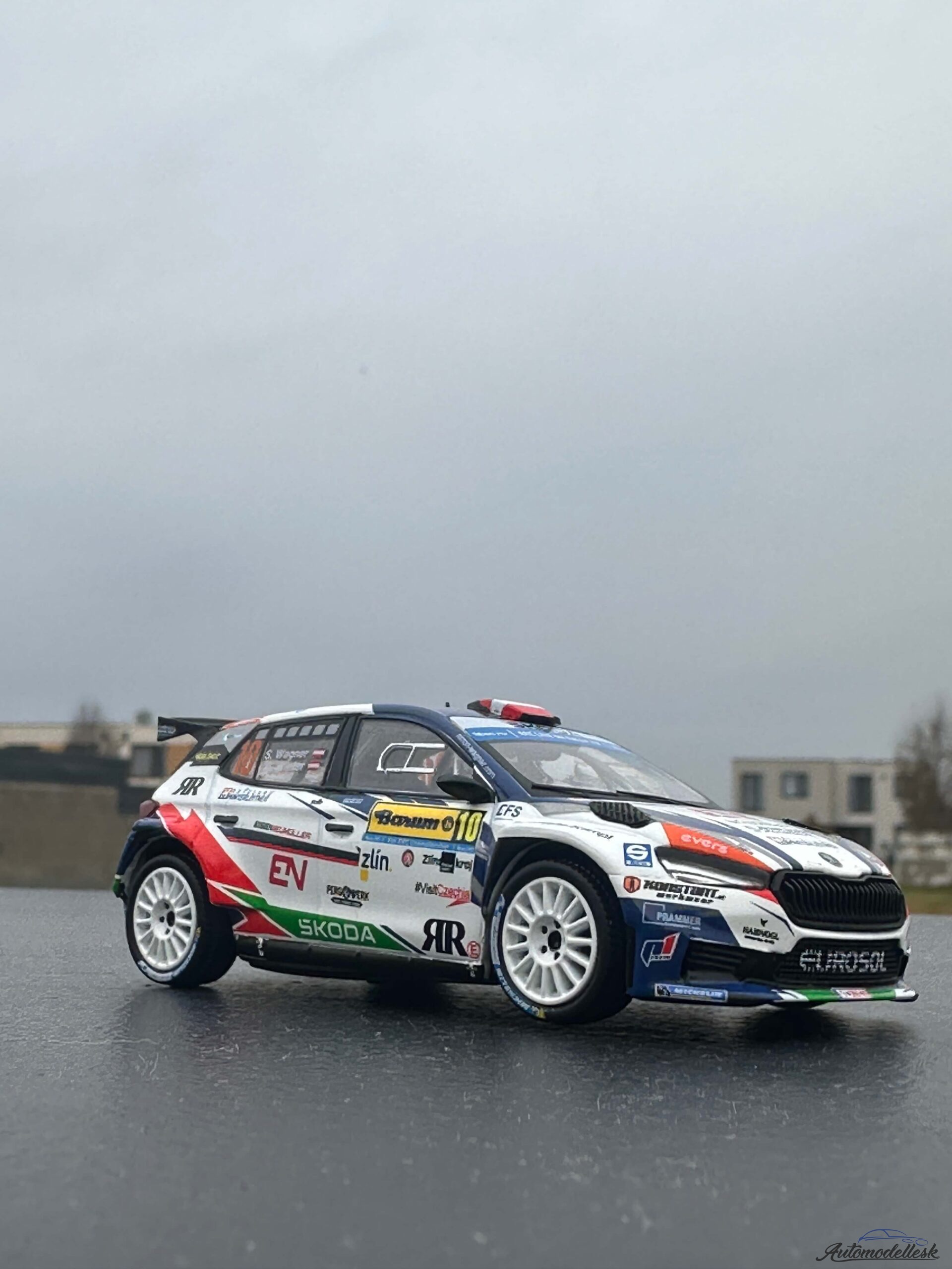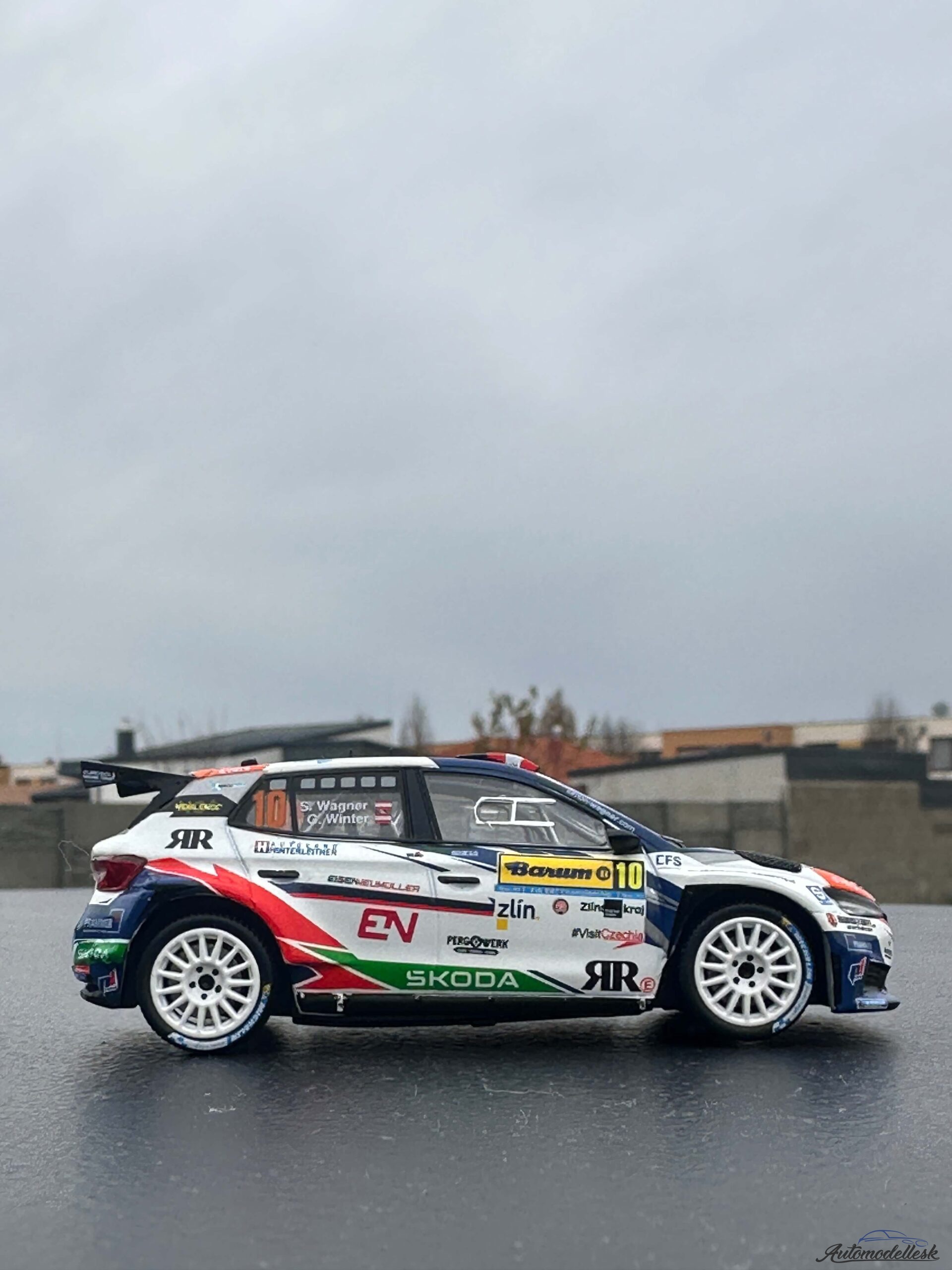 Zaujímavosti o originálnom vozidle: Škoda Fabia Rally2 (vyvinutá divíziou Škoda Motorsport) je jedným z najúspešnejších súťažných vozidiel v kategórii R5/Rally2 na svete. Je poháňaná 1.6-litrovým turbomotorom s výkonom približne 280 koní a stálym pohonom všetkých kolies, čo z nej robí špičkového pretekára na akomkoľvek povrchu. Barum Rally je jedným z najprestížnejších podujatí v rámci Európskeho šampionátu rally (ERC), známe svojimi rýchlymi a technicky náročnými asfaltovými úsekmi v okolí Zlína. Rakúska posádka Wagner/Winter patrí k pravidelným a úspešným účastníkom tejto náročnej súťaže.