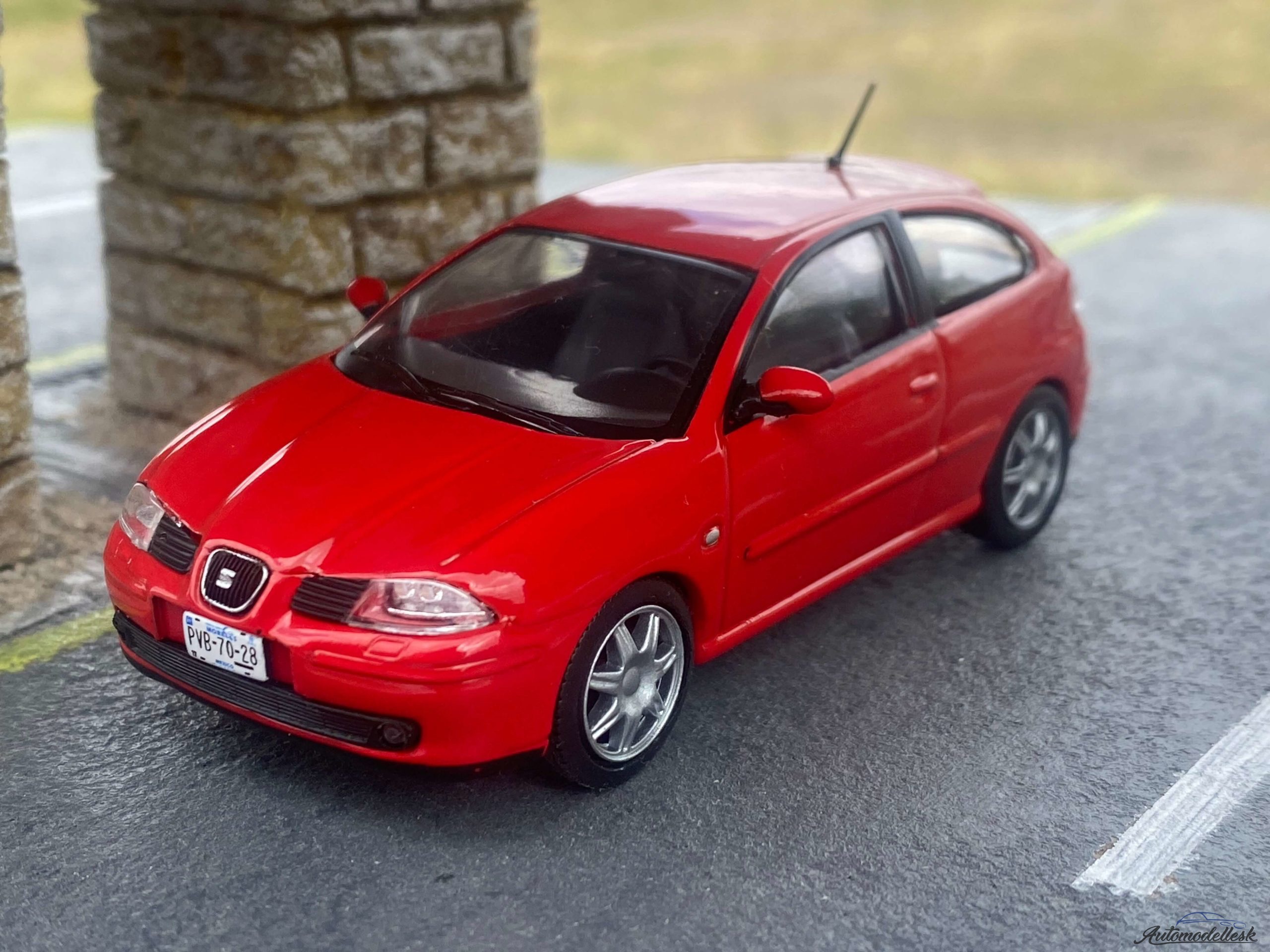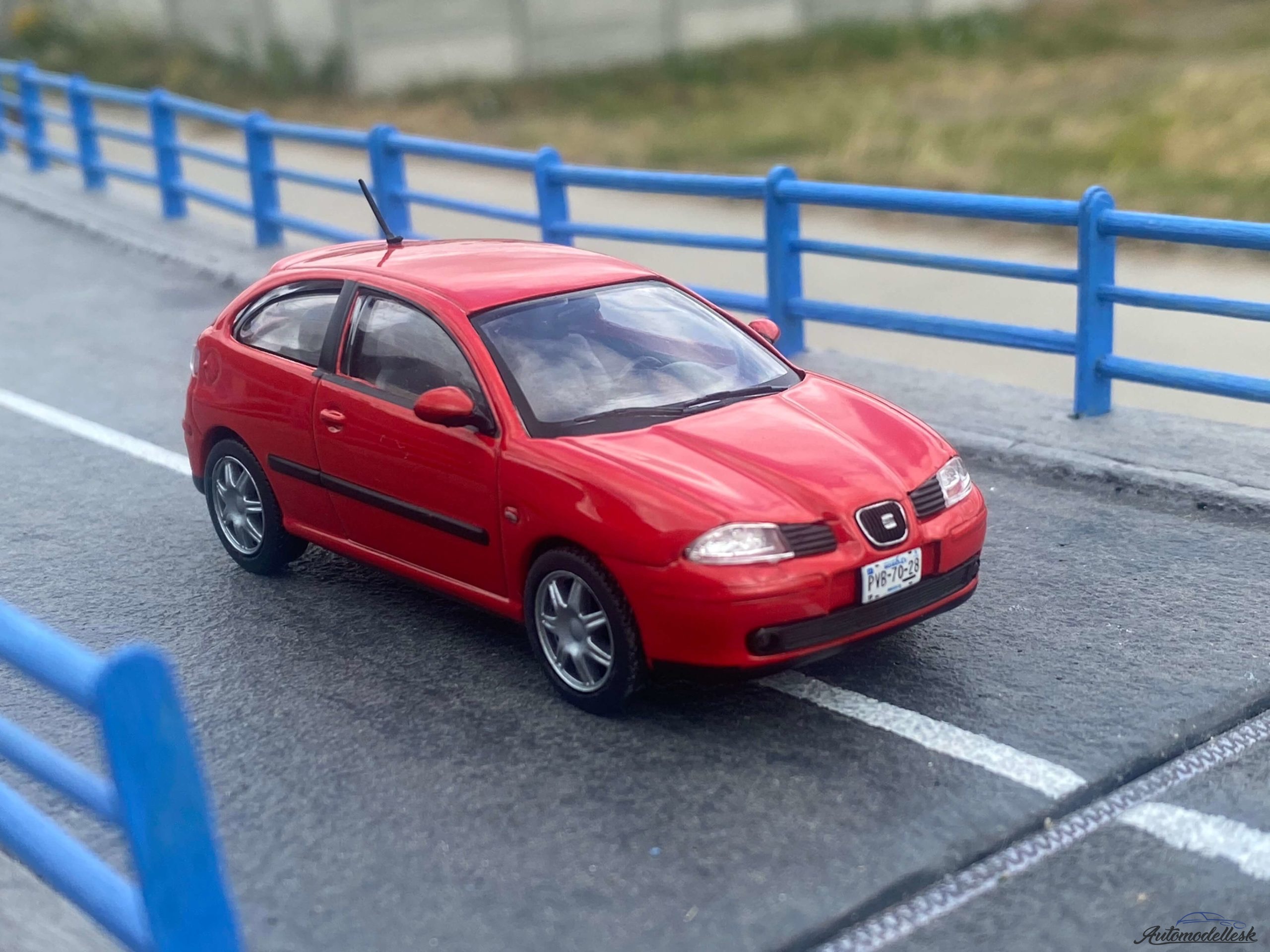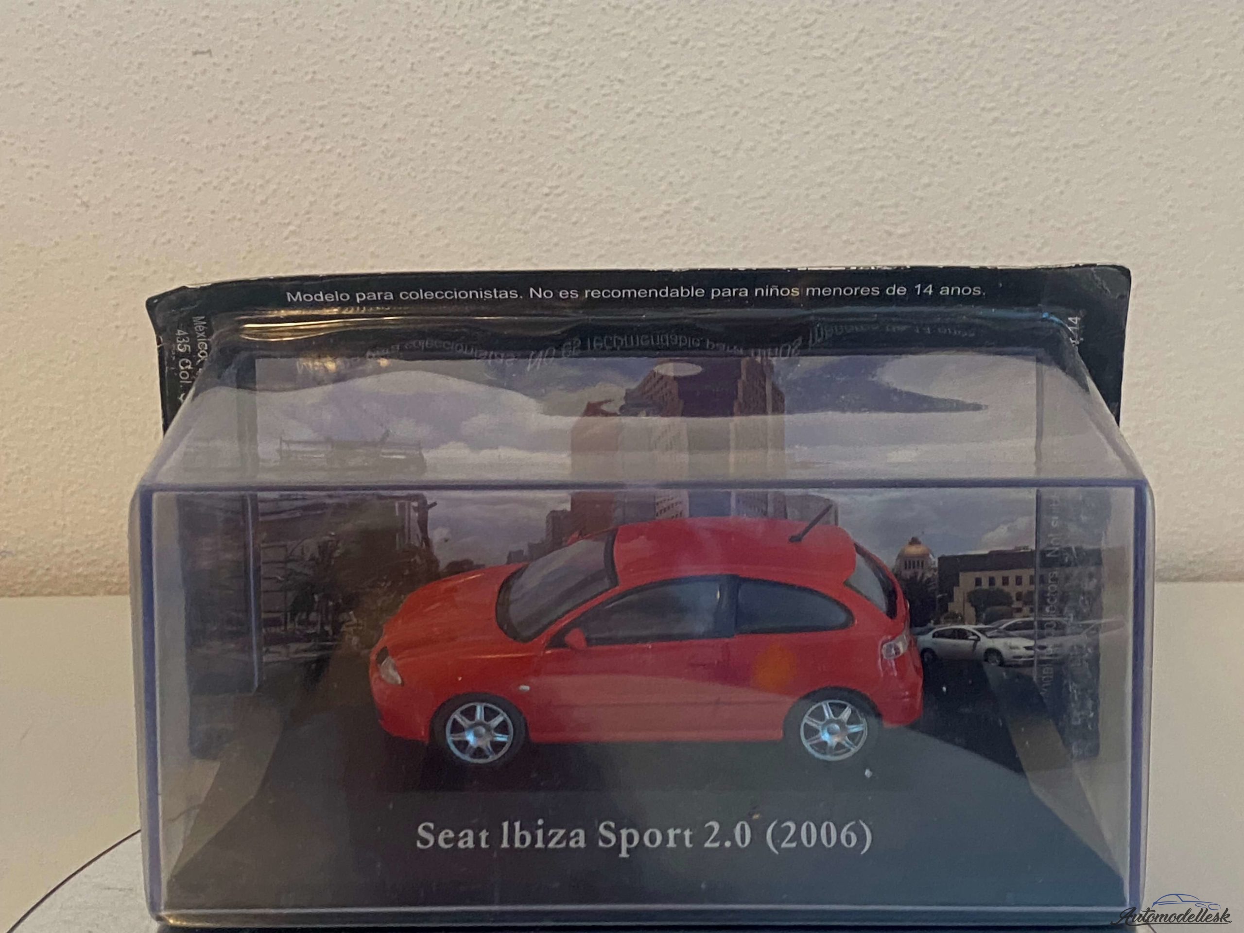 Model auta SEAT – IBIZA 2.0 SPORT 2006, červená. Mierka 1:43. Hachette. Balenie model je na podstavci vo vitríne.