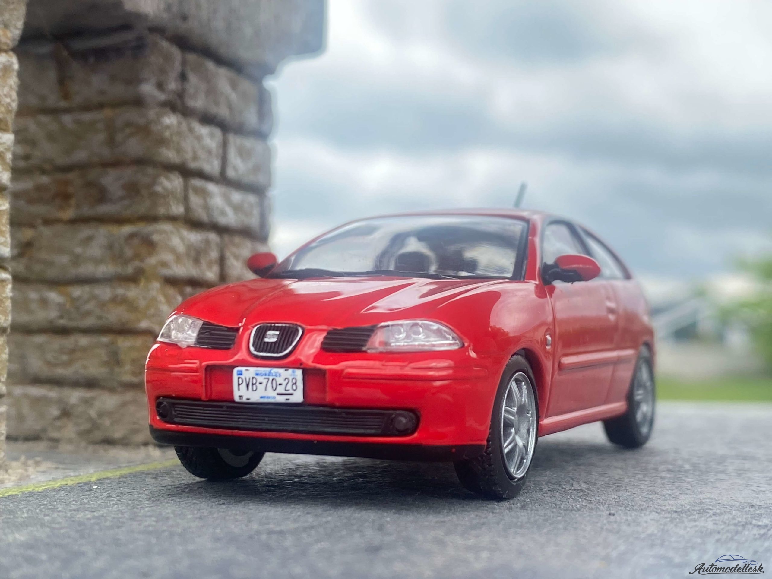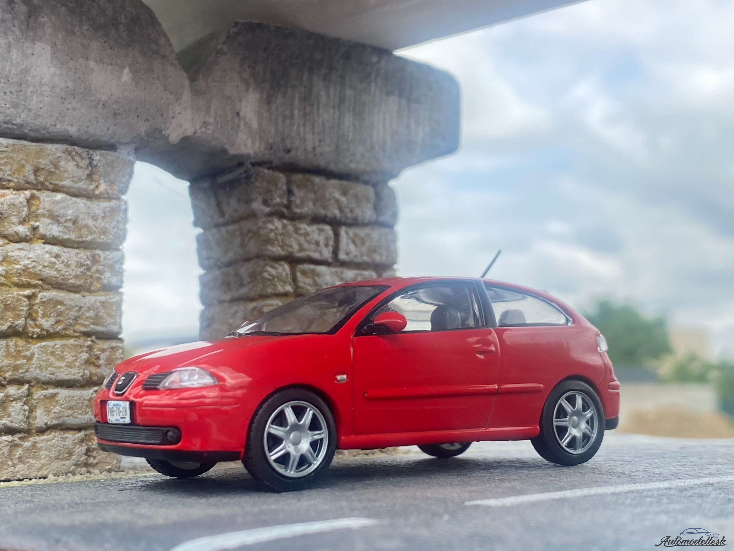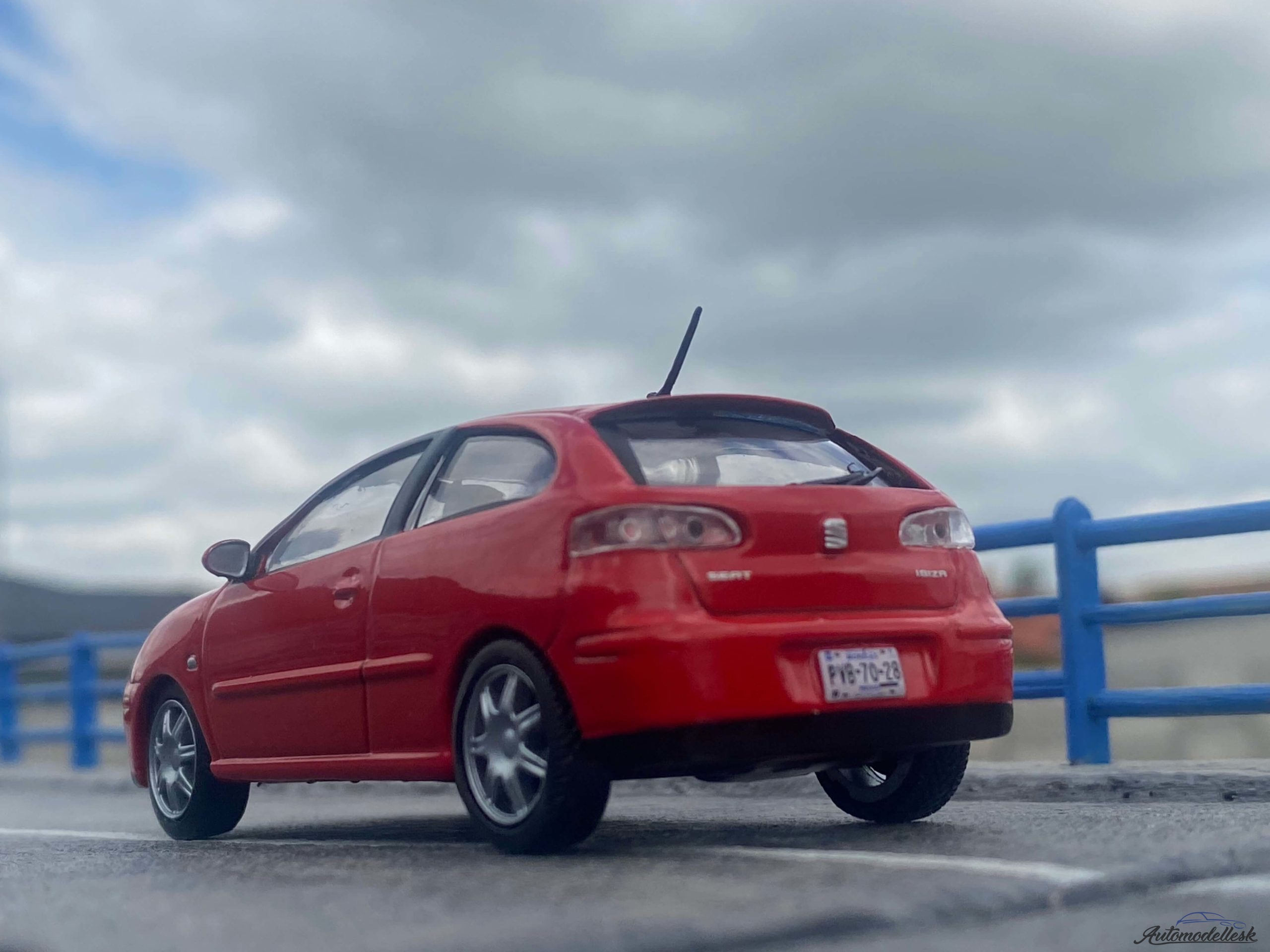 Model auta SEAT – IBIZA 2.0 SPORT 2006, červená. Mierka 1:43. Hachette. Balenie model je na podstavci vo vitríne.