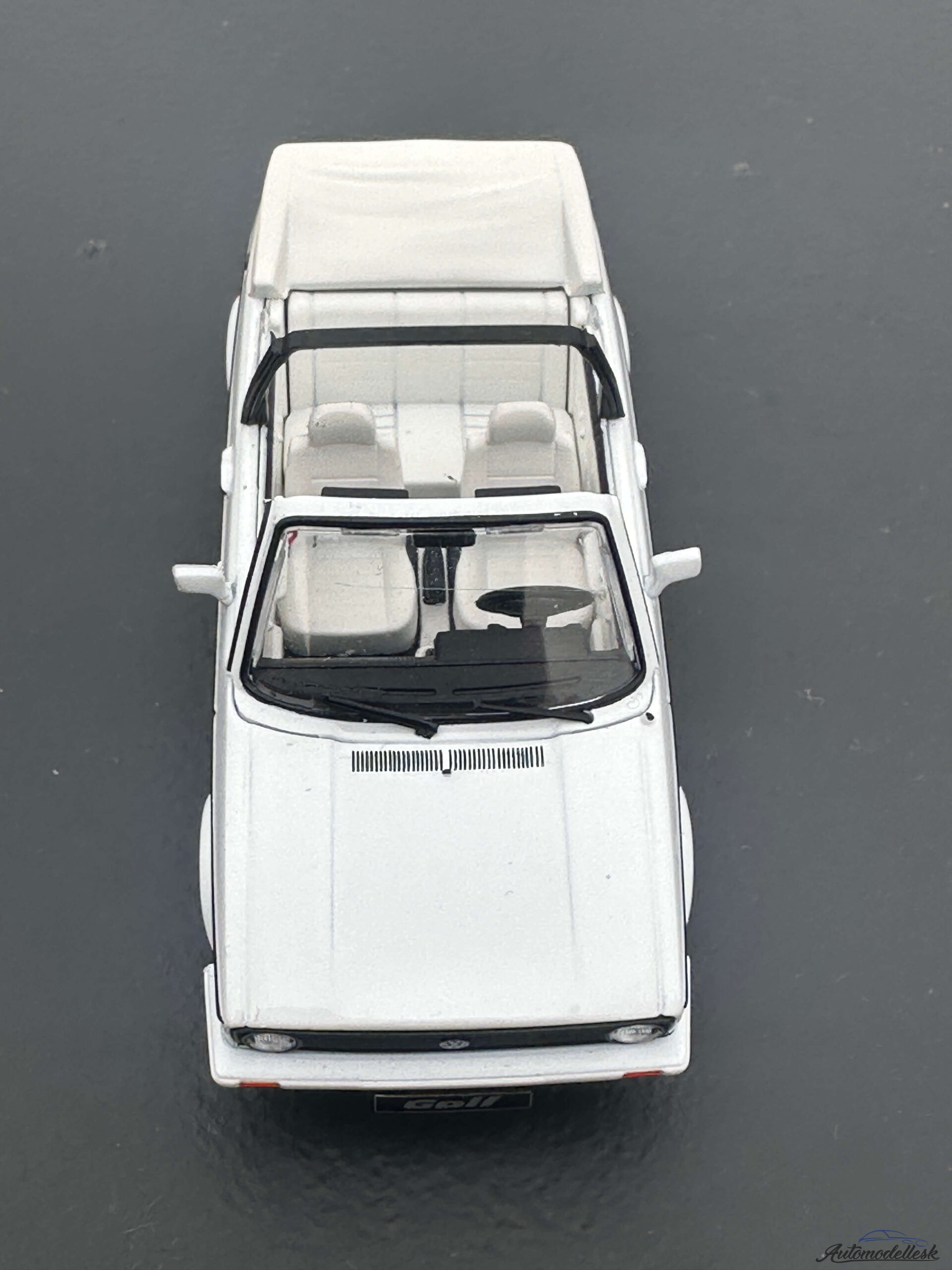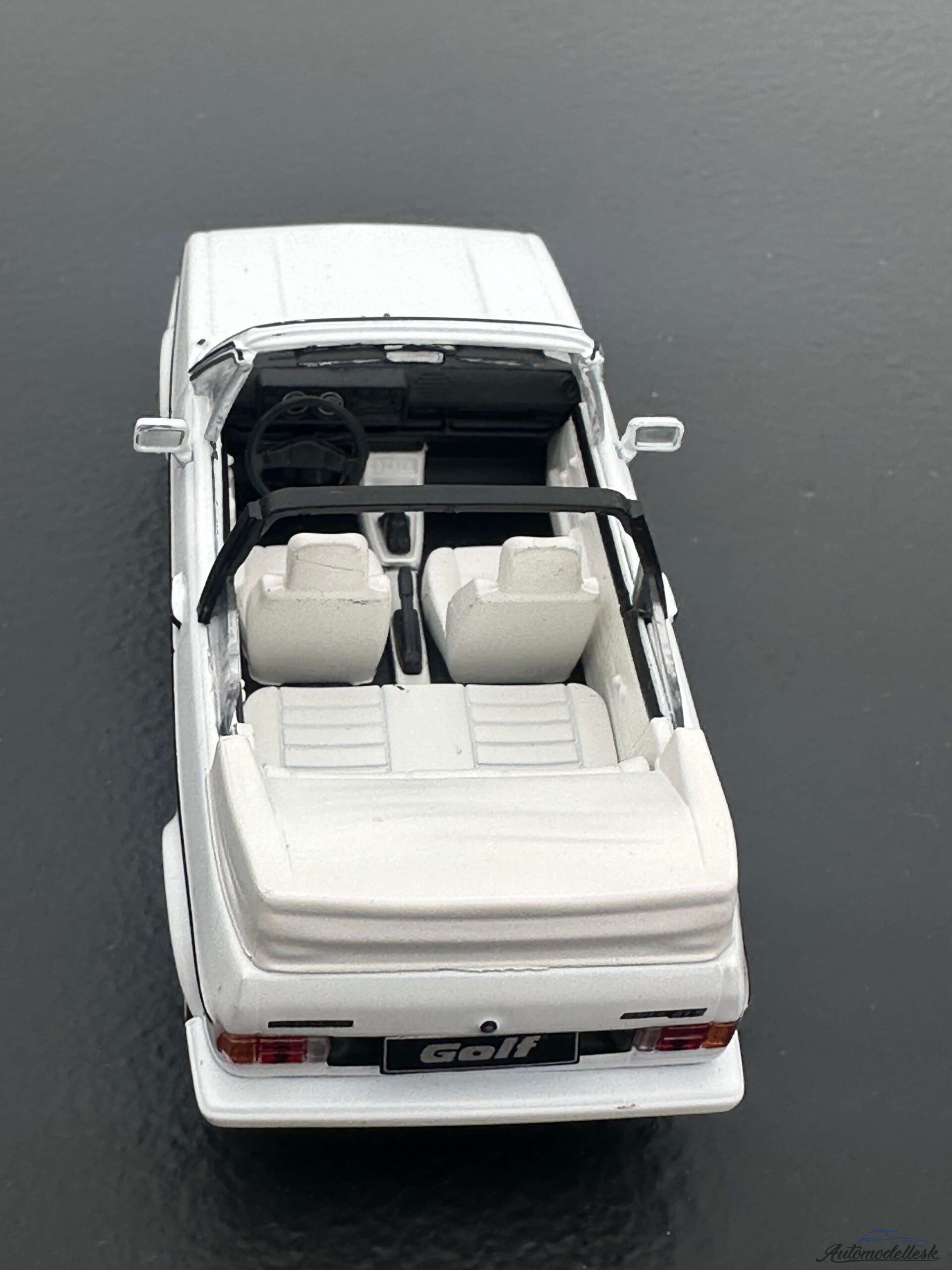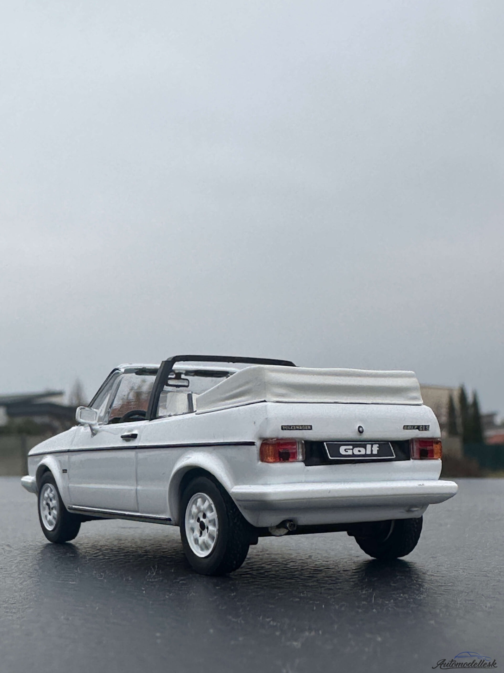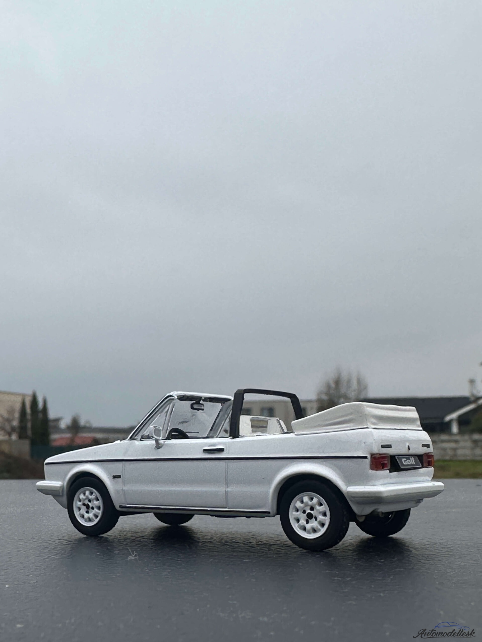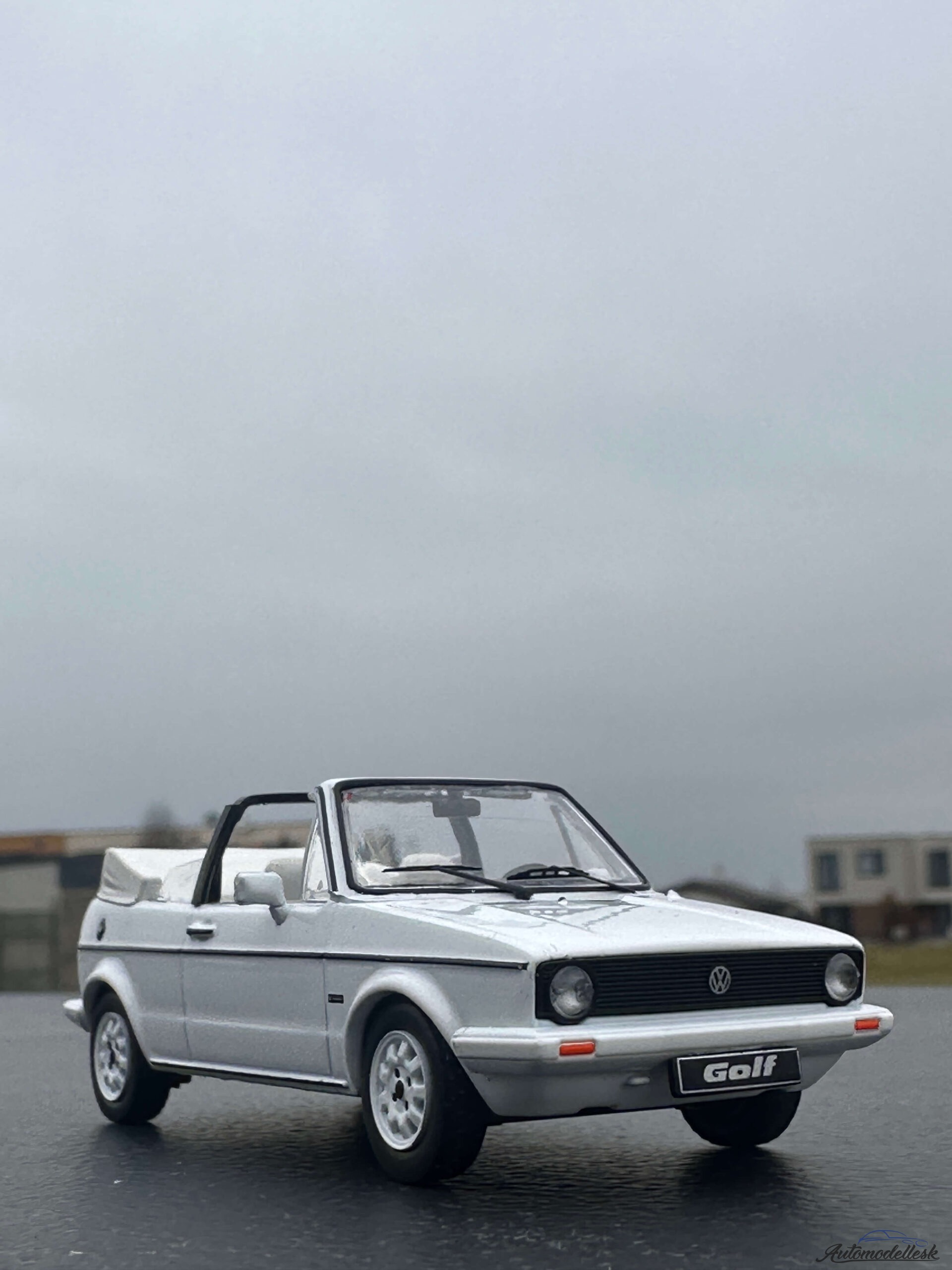 Zaujímavosti o originálnom vozidle: Volkswagen Golf MK I Cabriolet bol uvedený na trh v roku 1979 a bol vyrábaný až do roku 1993, čím prekonal aj produkciu sedanu druhej generácie. Vyrábala ho karosáreň Karmann a stal sa jedným z najúspešnejších a najdlhšie vyrábaných kabrioletov v histórii. Dizajn bol založený na pôvodnom Giugiarovom Golfe, ale s robustným oblúkom (roll-bar), ktorý zabezpečoval bezpečnosť a tuhosť karosérie. Tento kabriolet sa rýchlo stal kultovým symbolom slobody a životného štýlu, a je dodnes vysoko cenený medzi fanúšikmi značky.