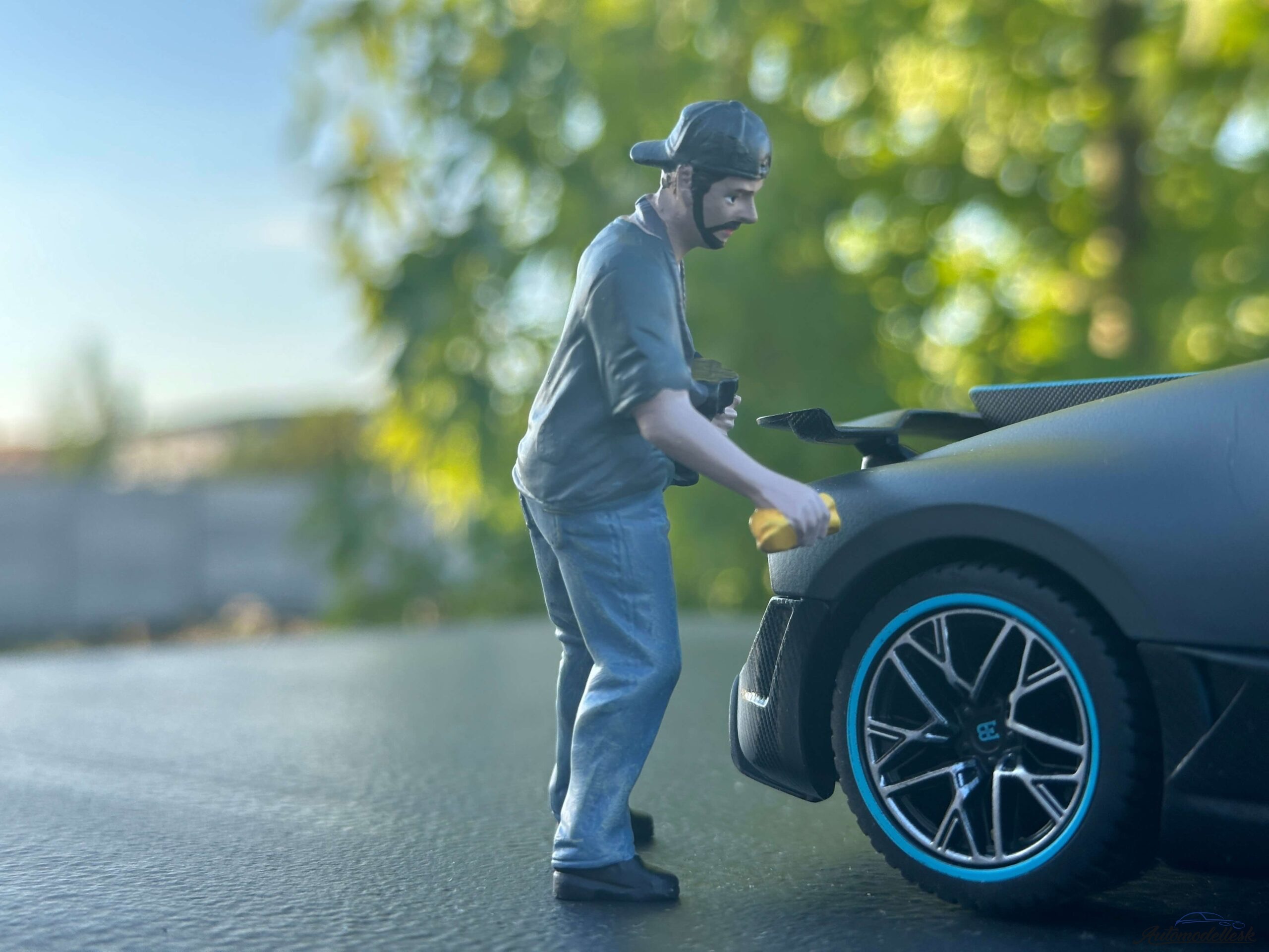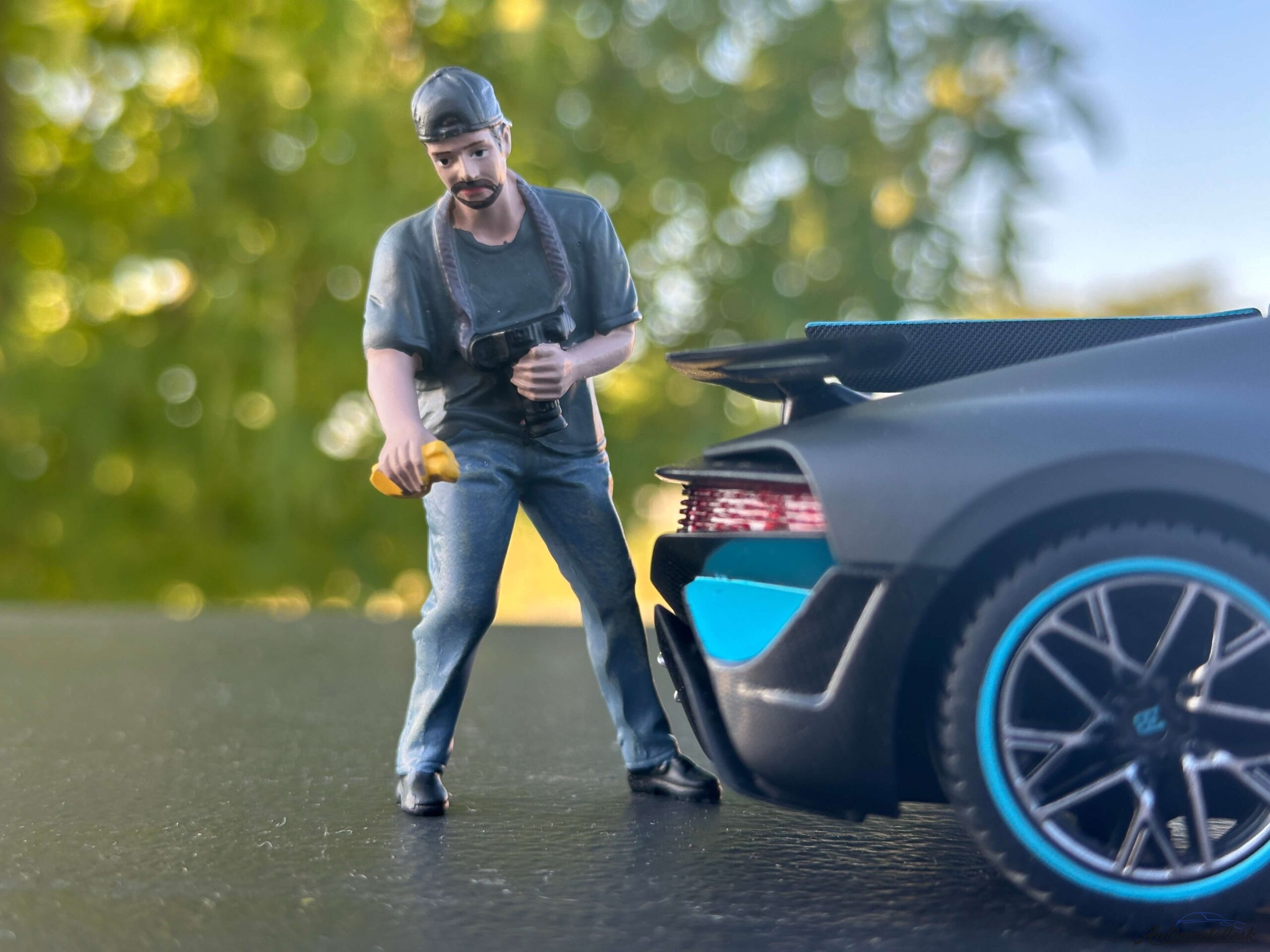 Postavička Car Wash Girl *Stephanie*. Mierka 1:24. American Diorama. Vyrobené z resinu. Ručne maľované. Balenie blister. Model vozidla na fotografií nieje súčasť balenia.