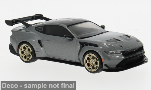 Model auta Ford Mustang GTD, šedá, 2025. Mierka 1:43. IXO Models. Balenie: model na podstavci vo vitríne s papierovým prebalom.